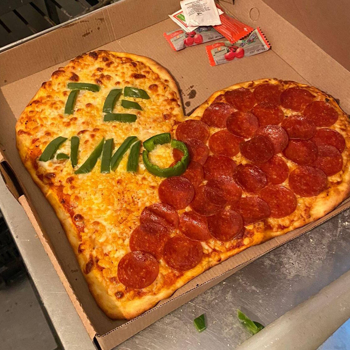 Pizza familiar en forma de corazon