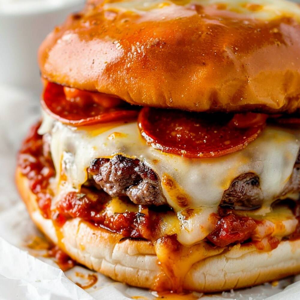 carne burger costra de queso pepperoni y tocino pan con mantequilla y aderezo especial y sobres de catsup