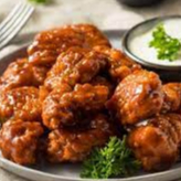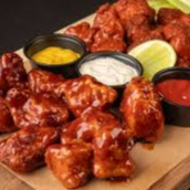 250 g de trozos de pechuga empanizada, bañados en salsa elegida, con 2 oz de ranch