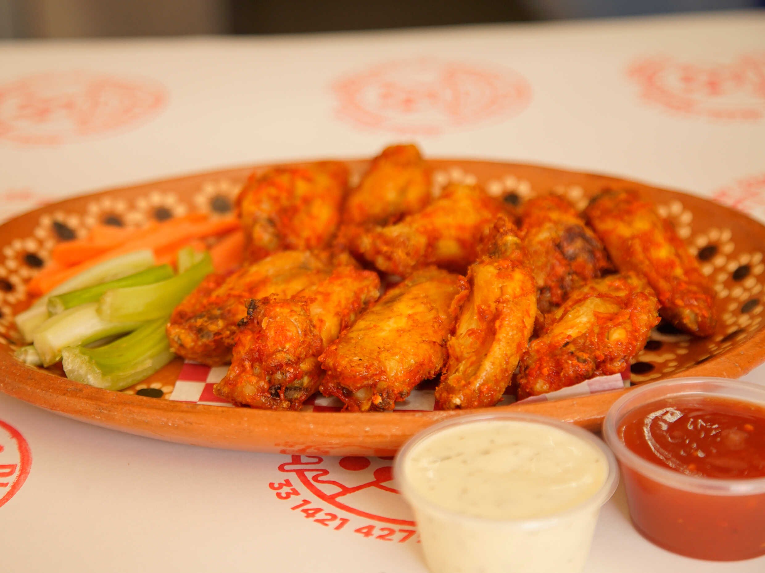 Alitas Chicas de Pollo Adobadas, Aderezo a Elegir.