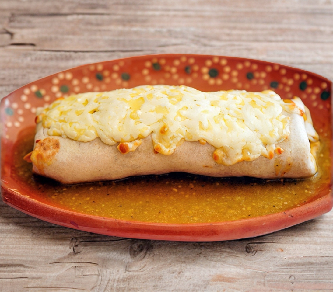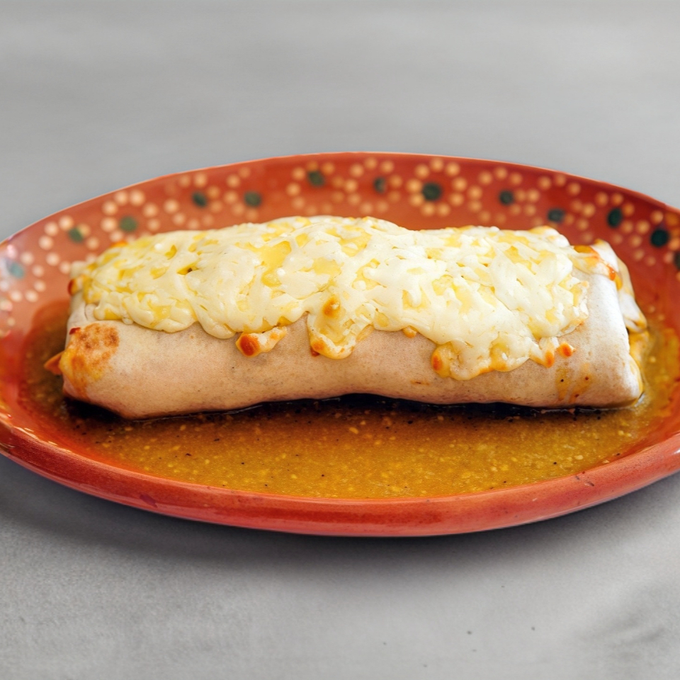 Relleno de bistec y frijolitos, con queso gratindo acompañdo de salsa de tomate especial.