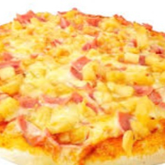 Queso blanco, jamón y piña, 25 cm.