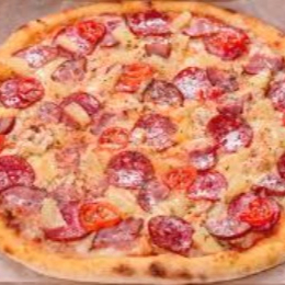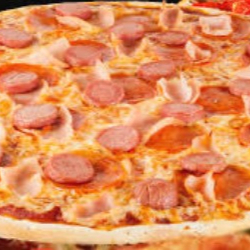 Jamón, salami, pepperoni, salchicha y queso blanco, 25 cm.