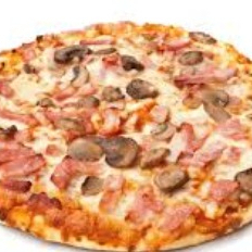 Champiñón, jamón, salami y queso blanco, 25 cm.