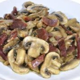 Tocino, queso blanco, champis y papas.