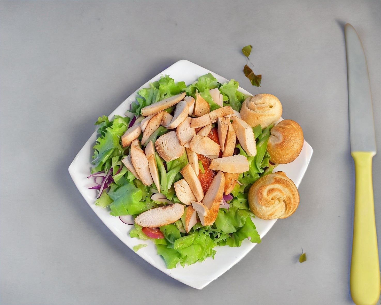 Lechuga, croutons, queso parmesano y aderezo ranch.