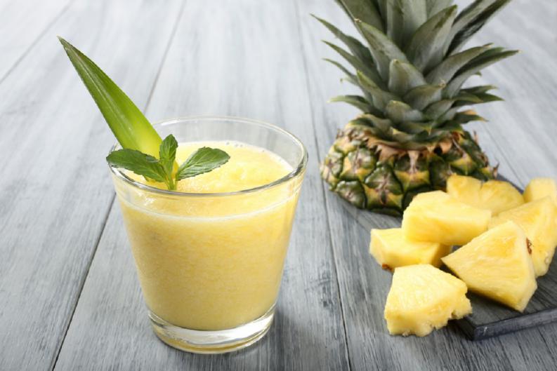 Frapeado de piña, crema de coco y leche.