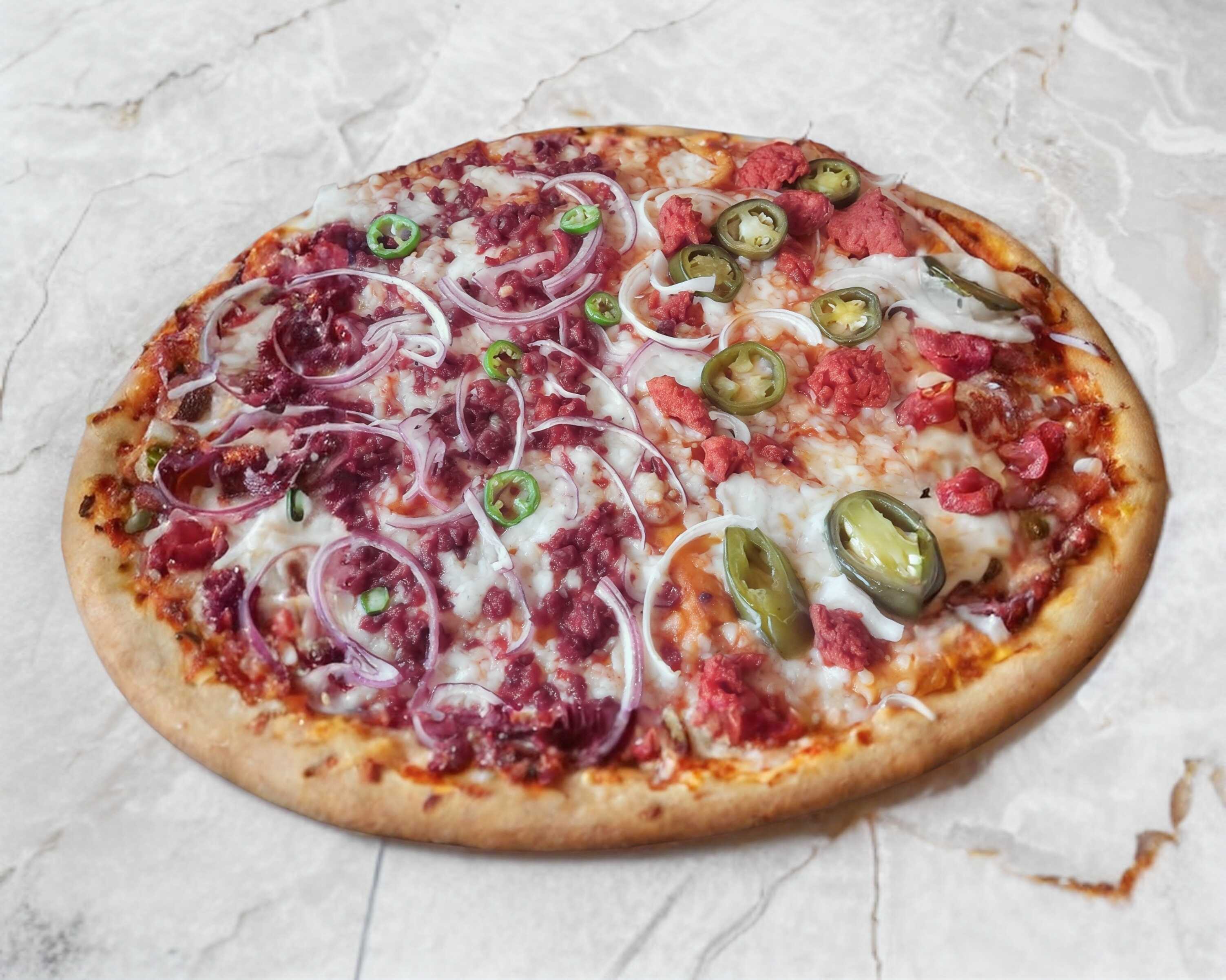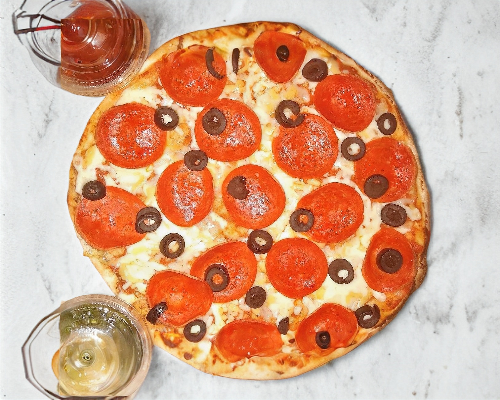 Pizza de 25cm, Deliciosa Salsa Roja o Blanca (alfredo), Queso Mozarella, Armala con 2 ingredientes, Incluye 1 Chile en aceite.