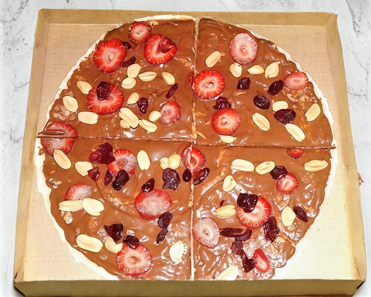 Pizza Individual 25cm con forma de Corazón para los enamorados! Nutella, Cacahuate, Fresa y Arandano.