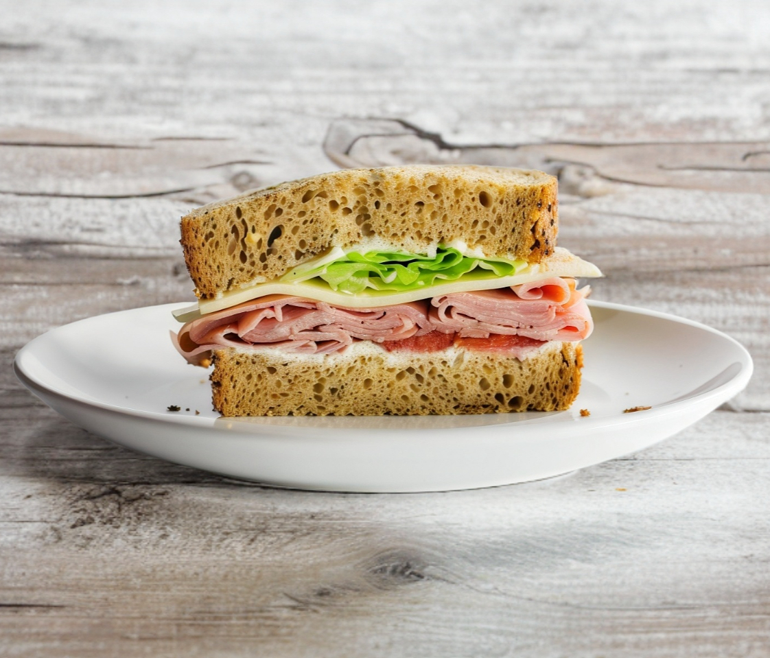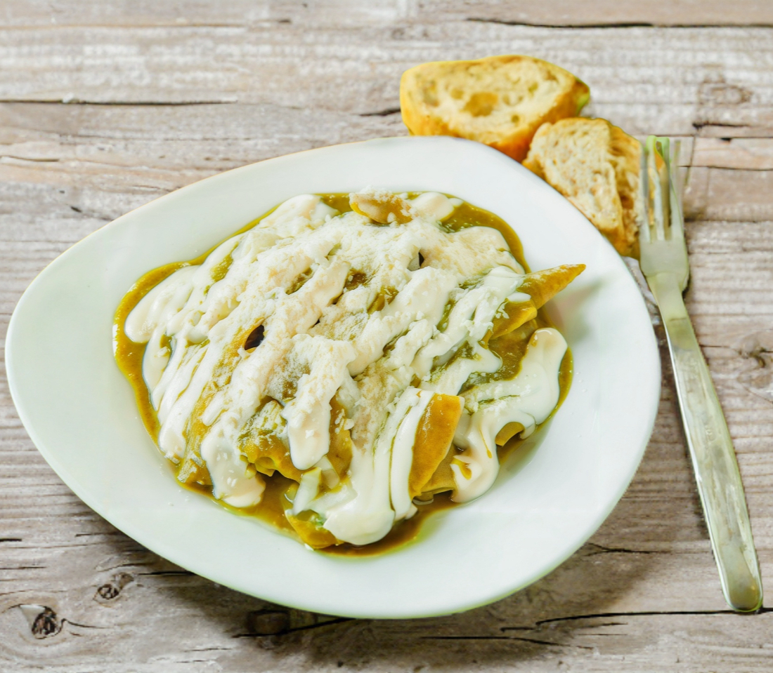 Jamón, queso, crema, jitomate, cebolla, aguacate, lechuga y jalapeño.
