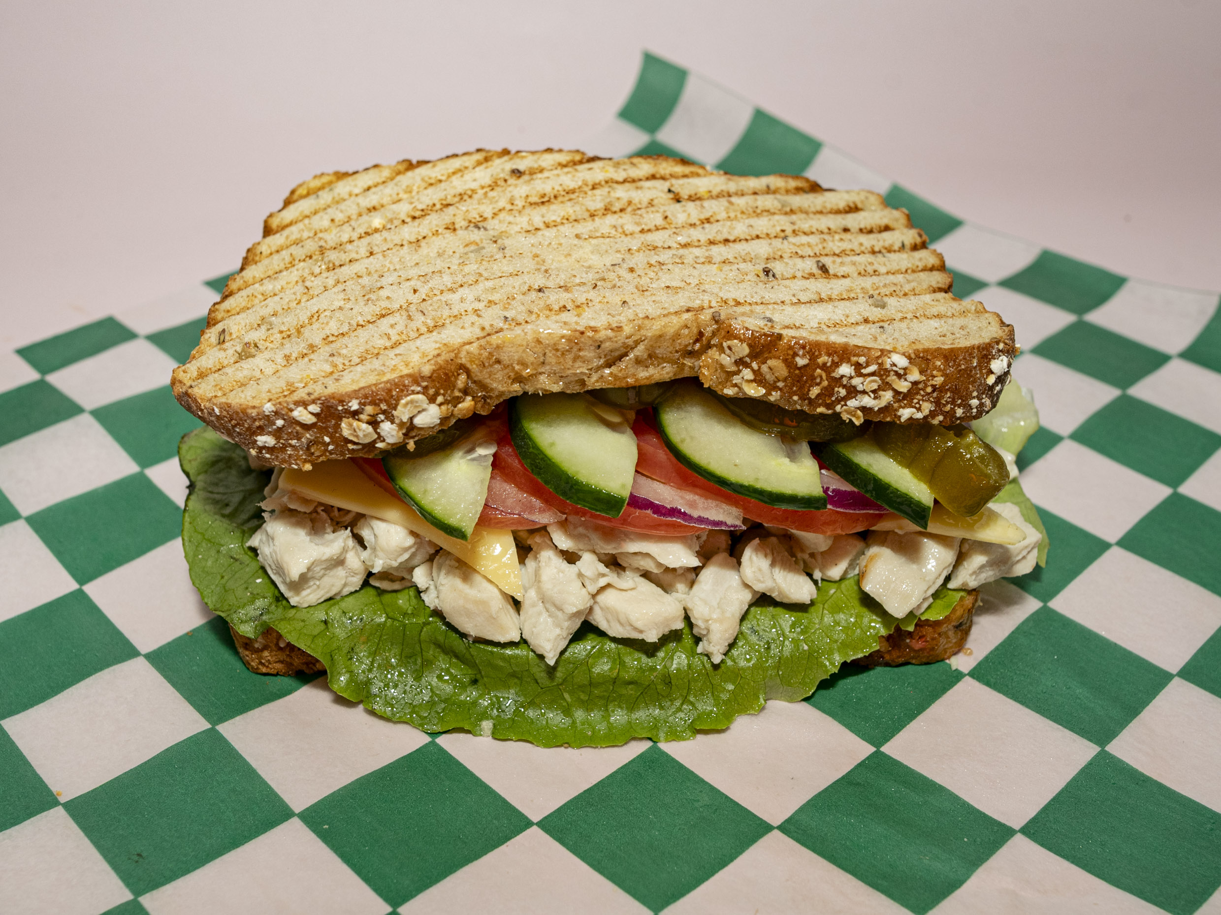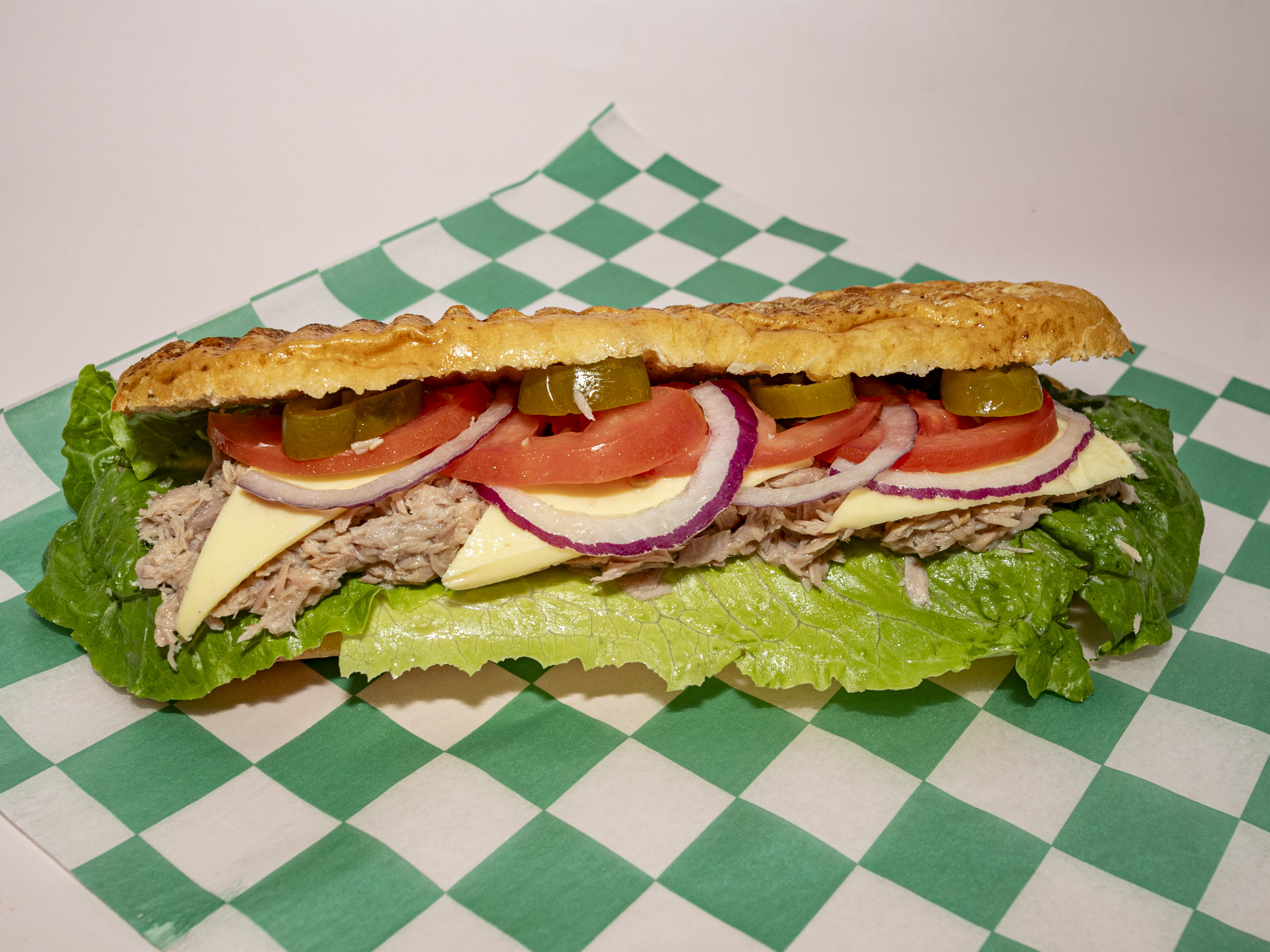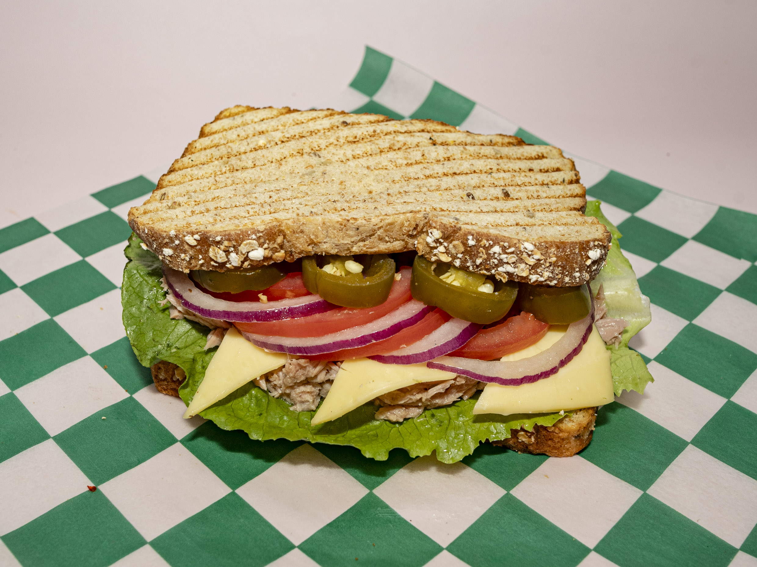 Atún, lechuga, jitomate, cebolla, queso manchego y chile jalapeño.