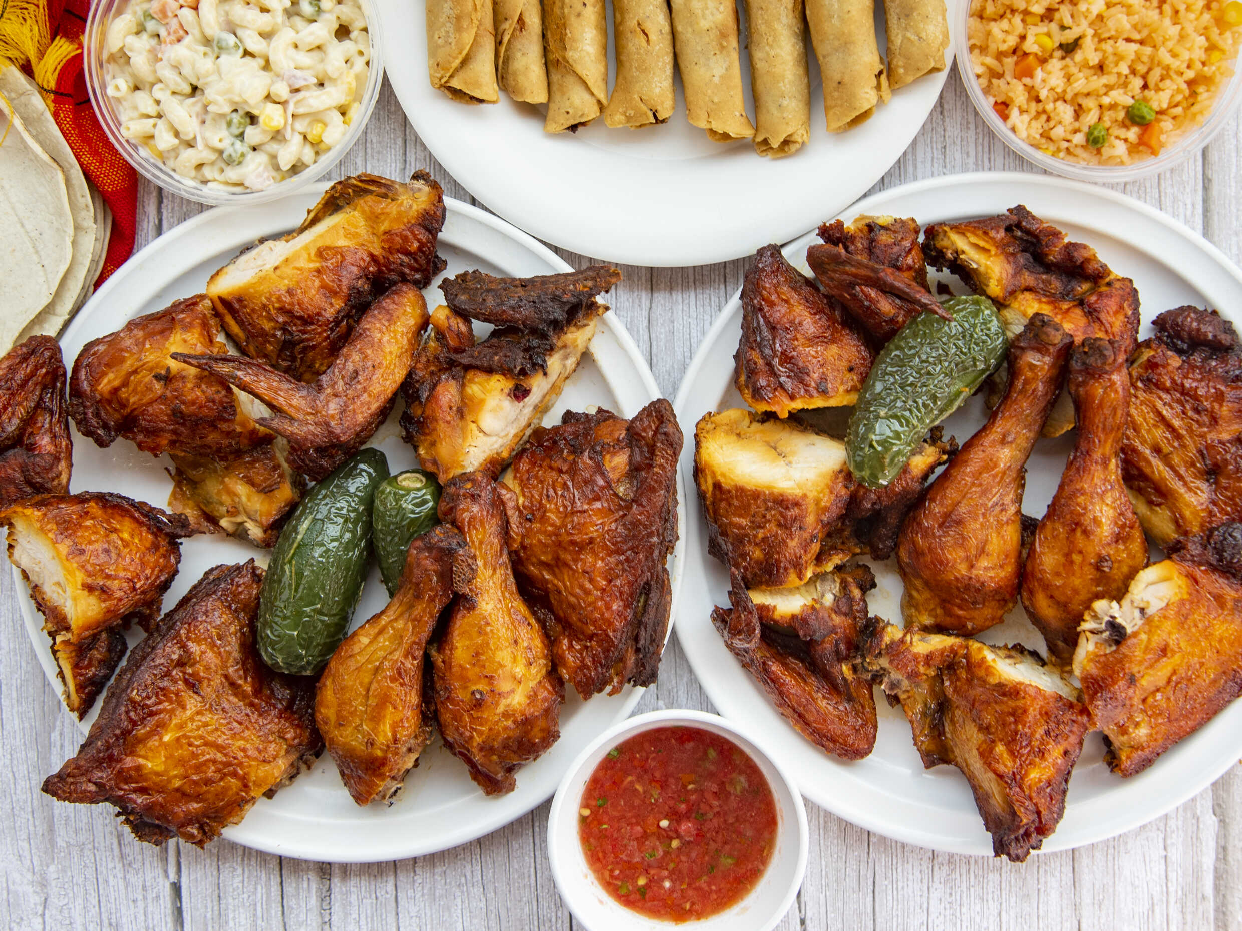 Un pollo estilo carnitas y 2 acompañamientos a elegir para una completa comida familiar con ahorro incluido.