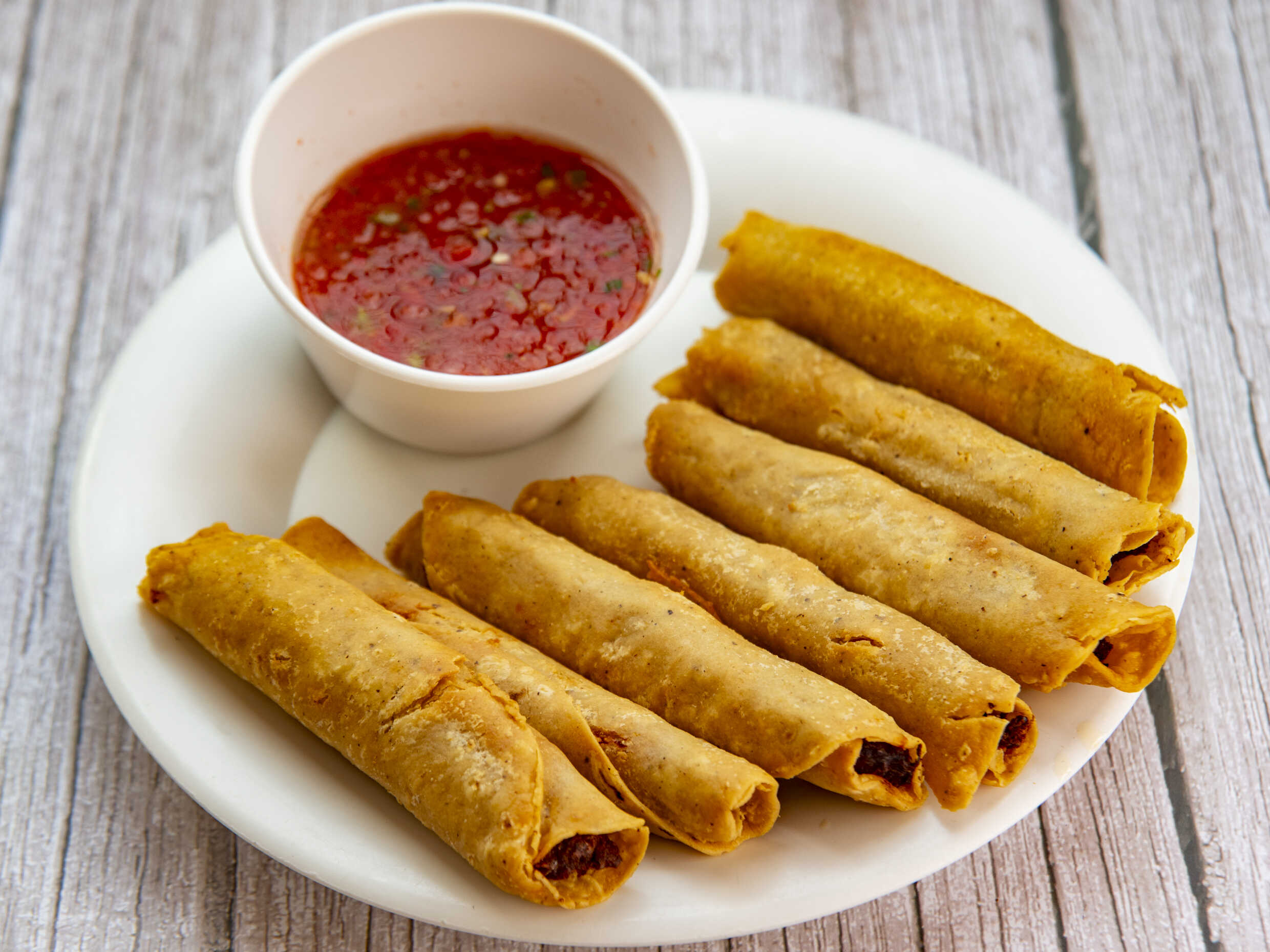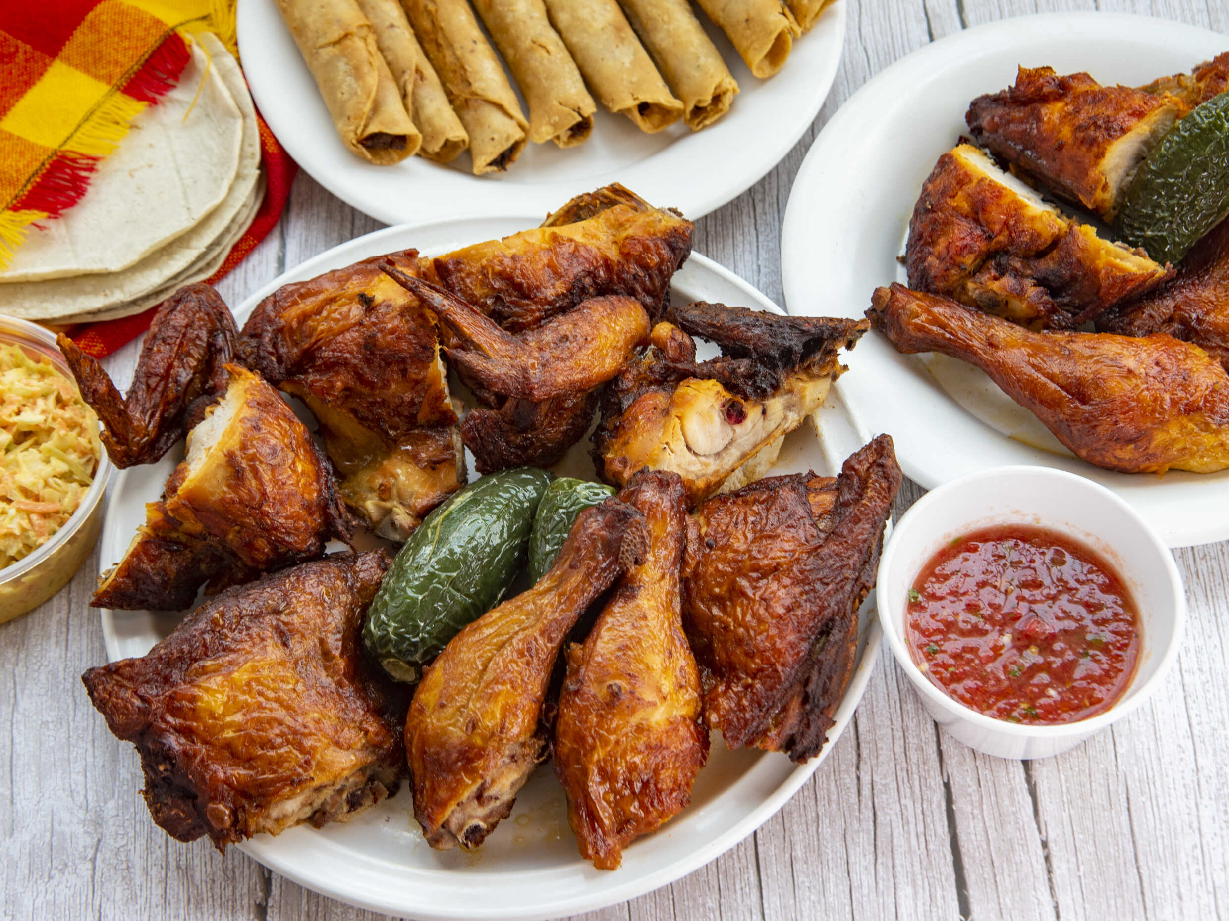 Un pollo y medio estilo carnitas, con un acompañamiento a elegir y 8 tacos doraditos para una completa comida familiar.