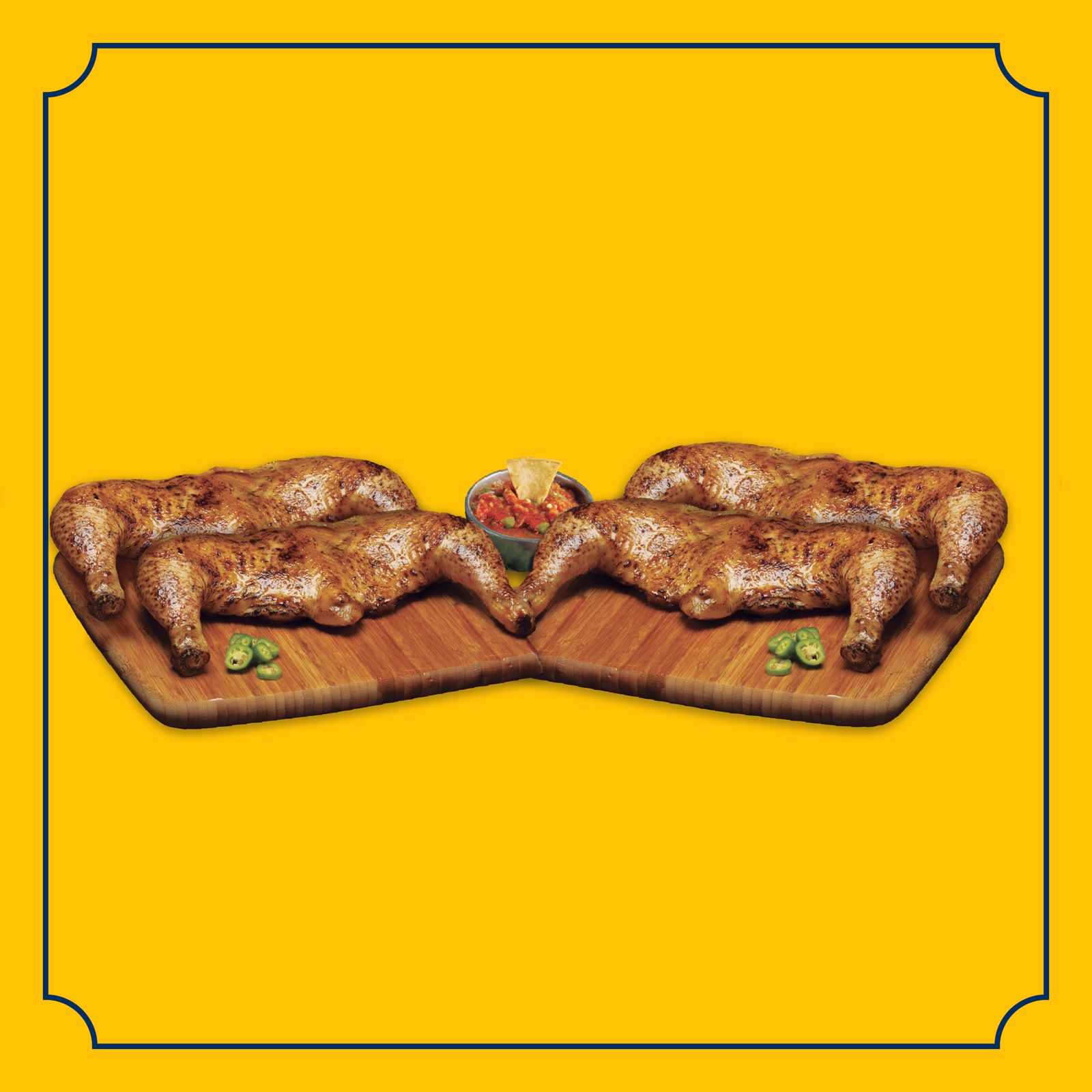 4 Piezas de pollo asado, incluye: salsa, chiles, totopos y 4 tortillas hechas a mano.