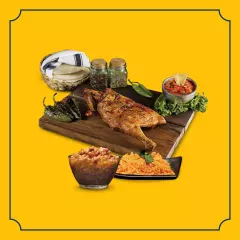 4 Piezas, 1 medio pollo de pierna y muslo, 1 más 1 complemento a elegir.