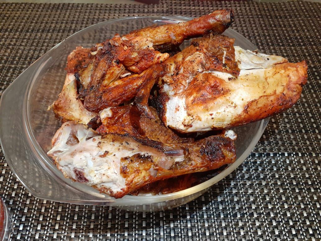 1 Pollo entero con salsa, tortillas, papas, arroz y sopa de coditos.