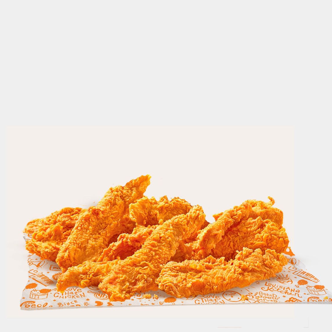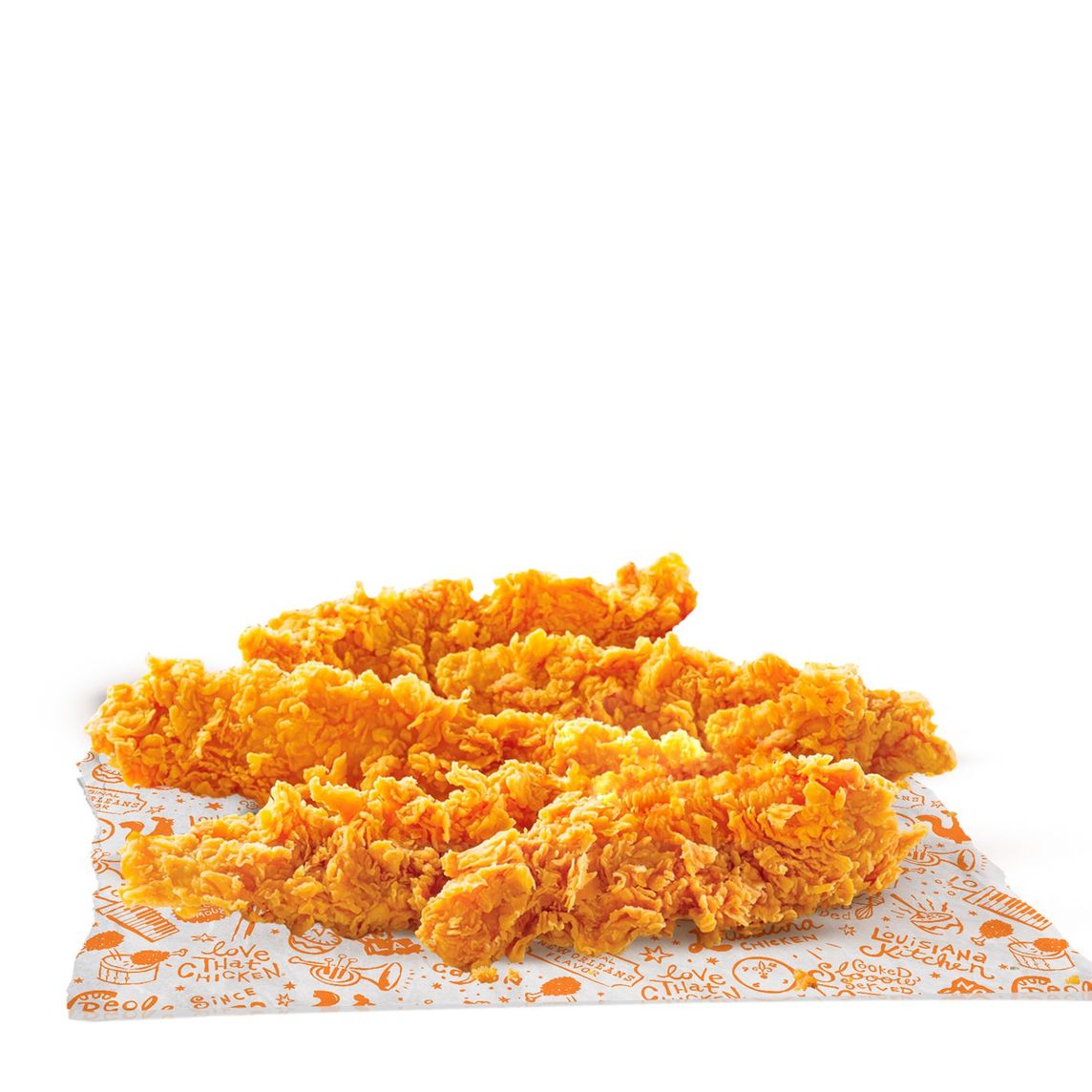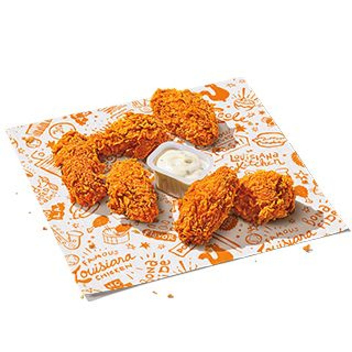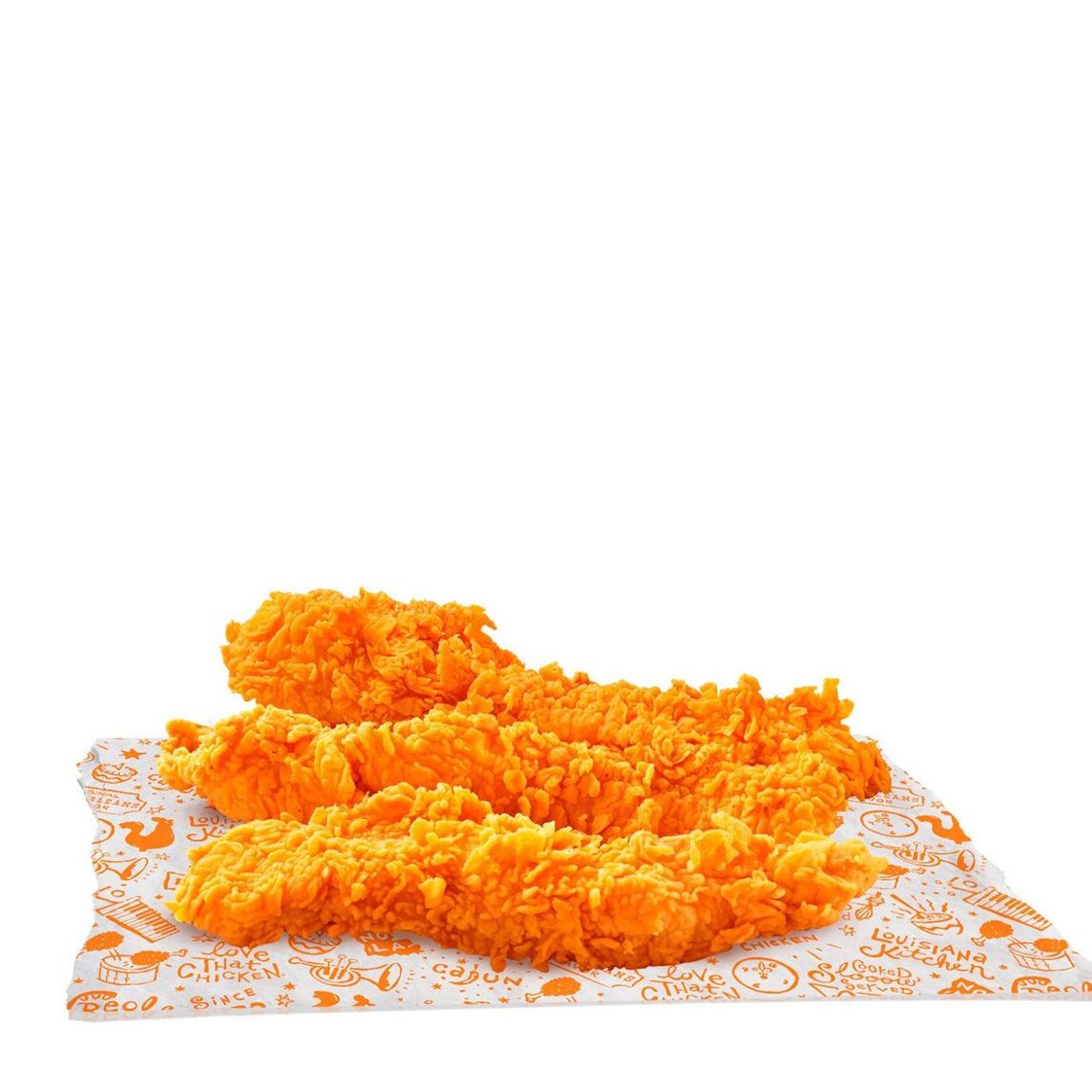 Pollo empanizado en tiras marinado en condimentos y especias de Louisiana, (3 pzs).
