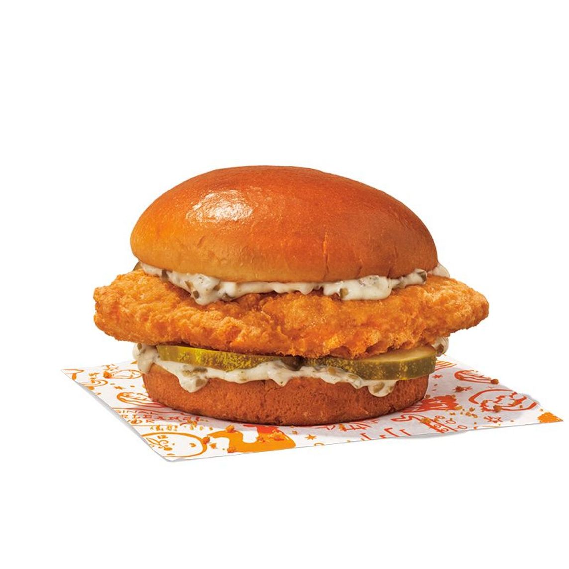 Filete empanizado crujiente, marinado en hierbas de Luisiana, servido en un pan brioche tostado con pepinillos encurtidos y salsa tártara. Por tiempo limitado