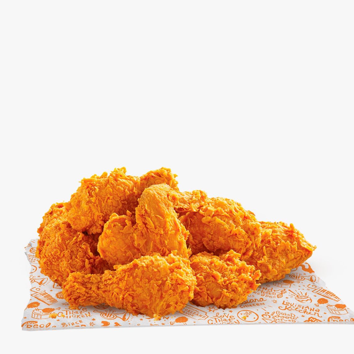 Pollo en tiras marinado en condimentos y especias de Louisiana, (8 pzs).