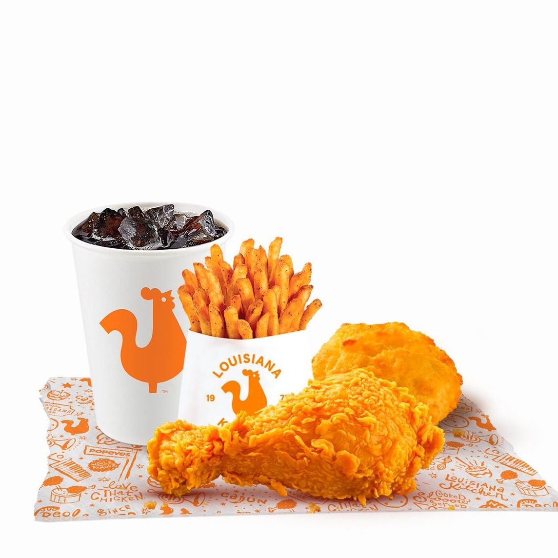 Combo de 3 Piernas de Pollo, incluye 1 Complemento Regular a elección, 1 Biscuit y 1 Refresco Chico a elección.