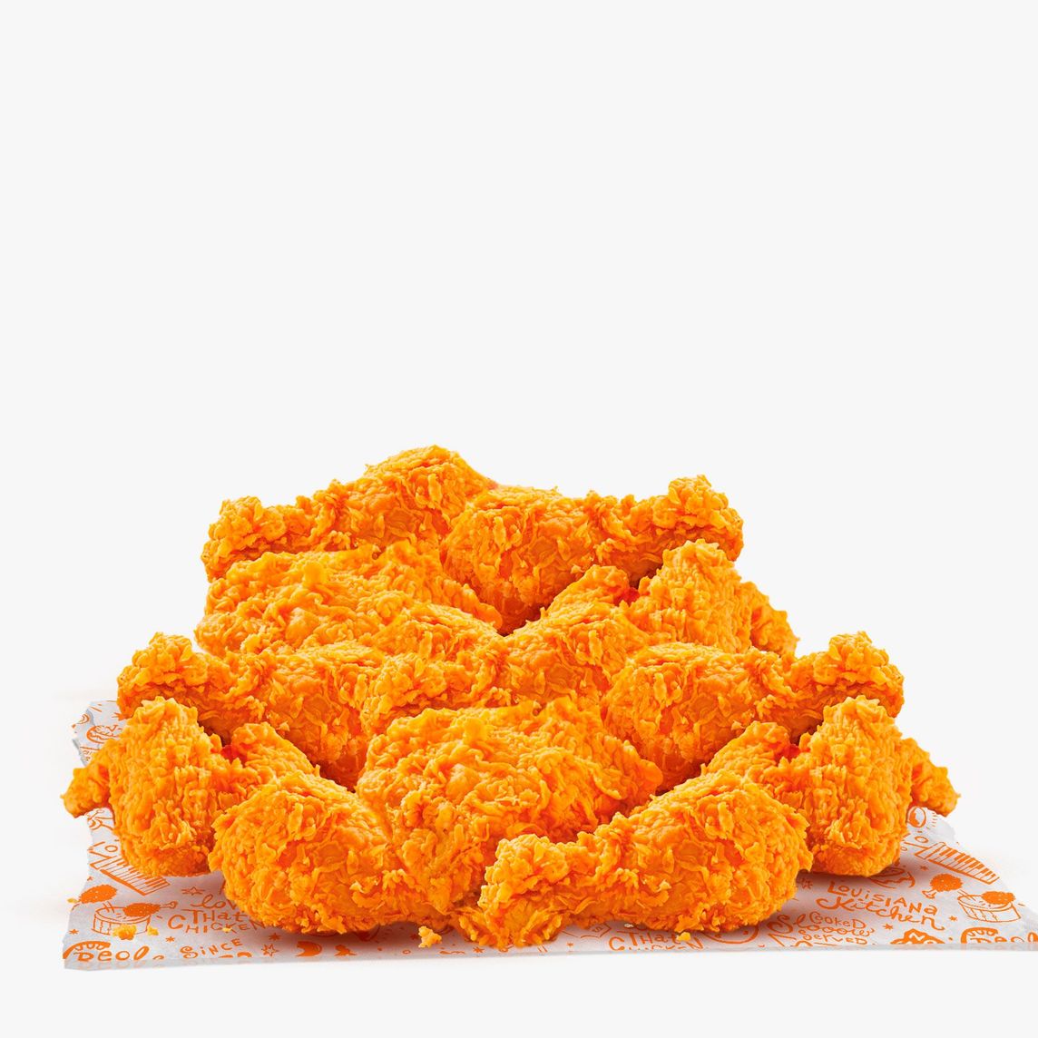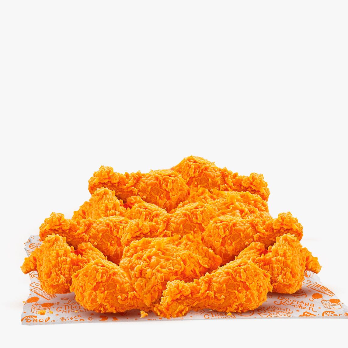 Pollo crujiente marinado en condimentos y especias de Louisiana, (12 Pzas de pollo con hueso).