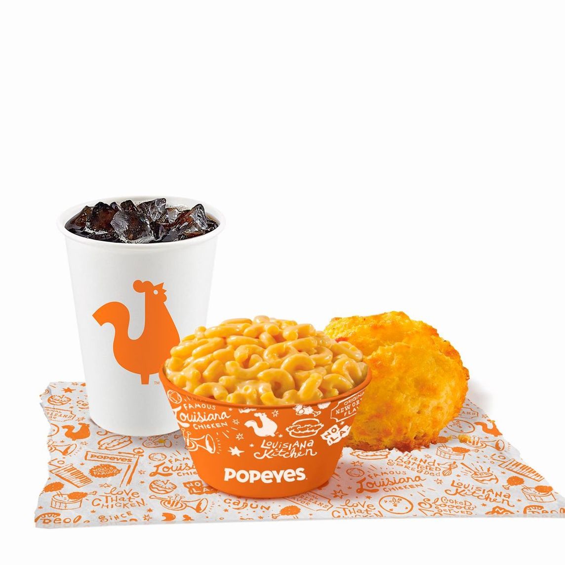 Kids Meal Mac&Cheese, incluye 1 Biscuit y 1 Refresco Chico a elección.