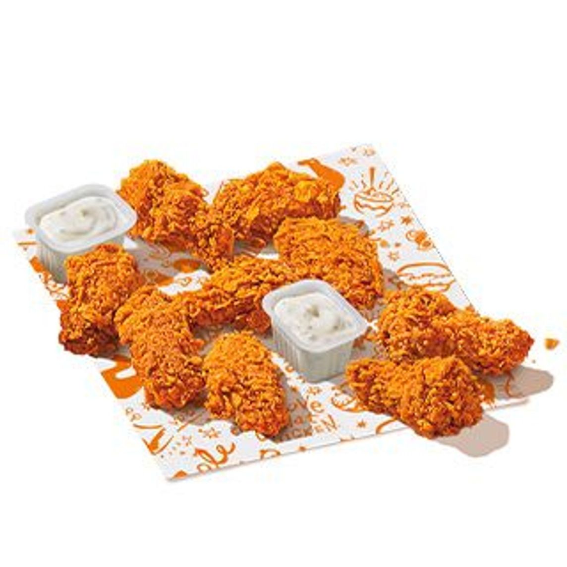 Pollo en tiras marinado en condimentos y especias de Louisiana, (12 pzs).
