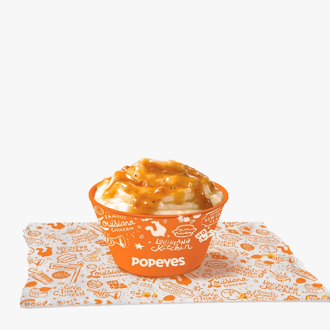 Puré de papa, bañado de nuestro gravy cajún combinado con trocitos de pollo.