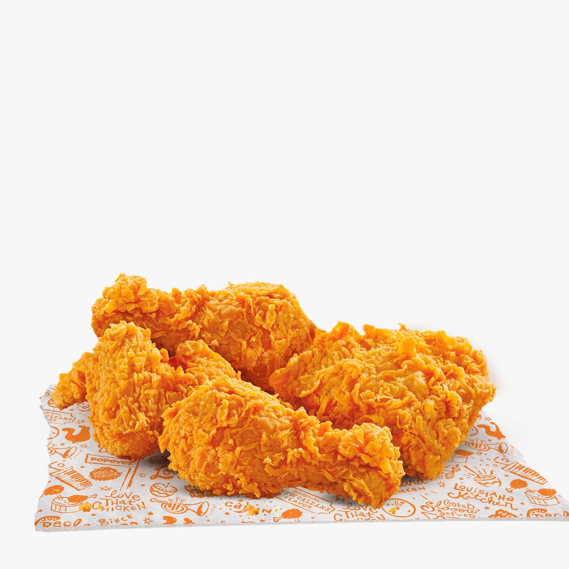 Pollo empanizado en tiras marinado en condimentos y especias de Louisiana, (3 pzs).
