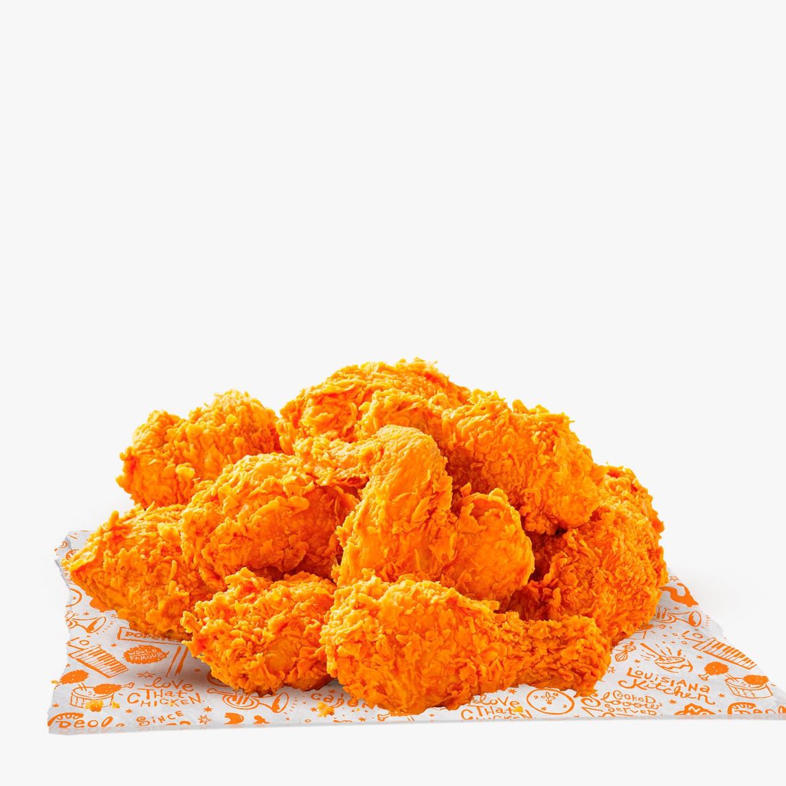 Pollo crujiente marinado en condimentos y especias de Louisiana, (12 Pzas de pollo con hueso).