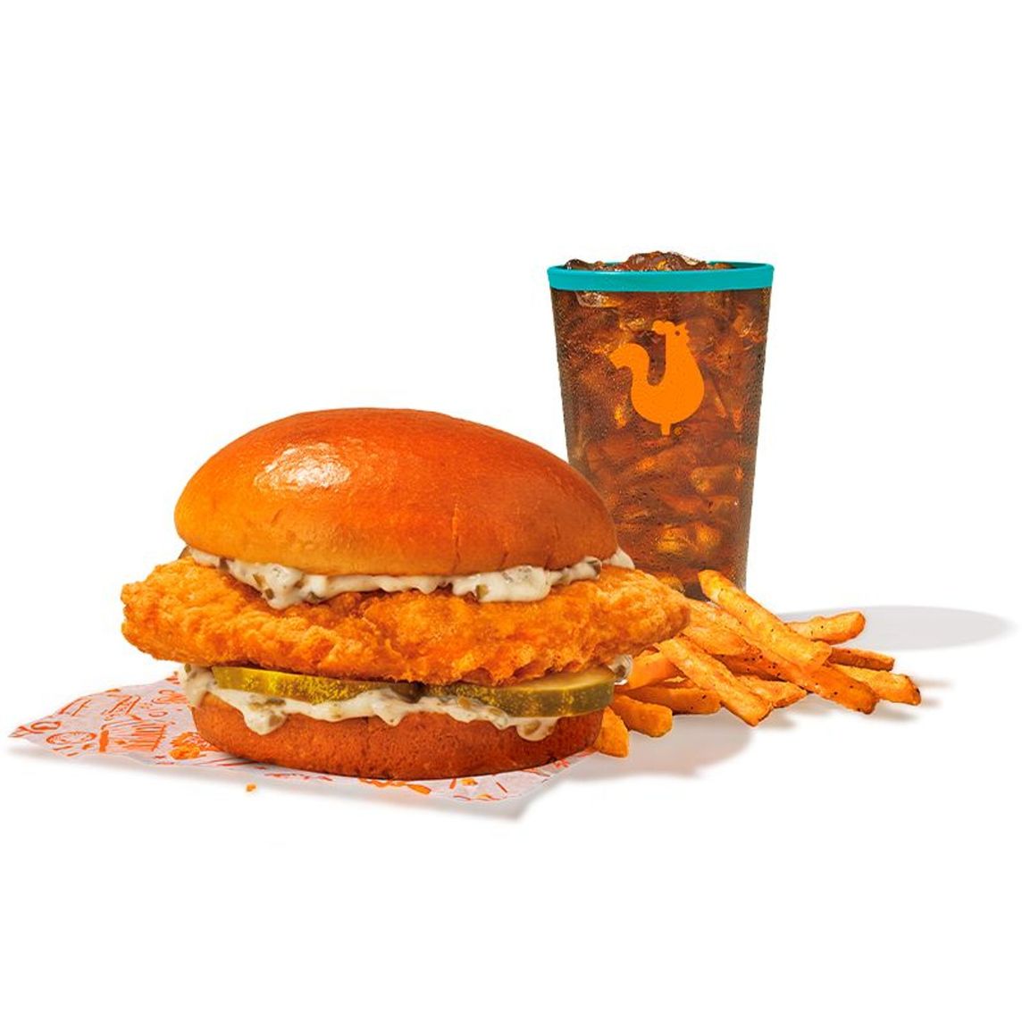Filete empanizado crujiente, marinado en hierbas de Luisiana, servido en un pan brioche tostado con pepinillos encurtidos y salsa tártara. Por tiempo limitado. con 1 papas regulares y 1 refresco chico.