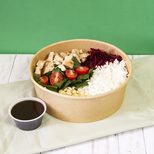 Pechuga de pollo bañada en teriyaki sobre arroz blanco, betabel, elote, espinaca y tomate cherry. Dulce, balanceado y perfecto para recargar energía.