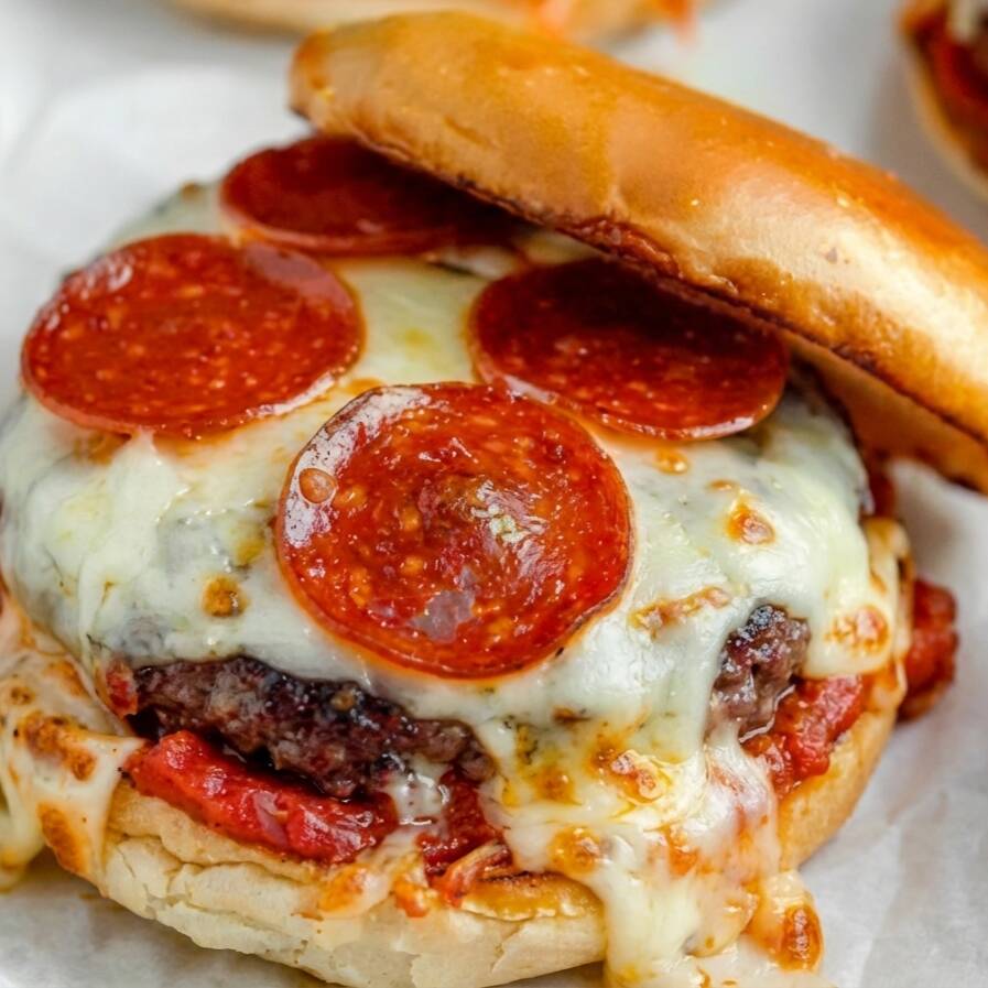Carne de res jugosa, queso mozzarella gratinado, crujiente pepperoni y salsa estilo pizza, todo dentro de un suave pan brioche tostado. 🍔🔥