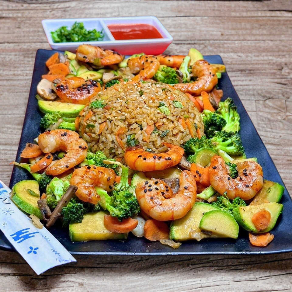 Verduras a la plancha sazonadas con una porcion de arroz frito (yakimeshi) con la proteina de su eleccion.