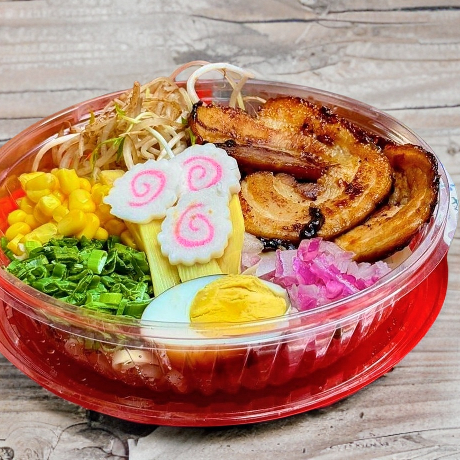 Caldo a base de cerdo con pasta, bambu, cebolla, elote, cebollin, germinado, 1/2 huevo, 2 rebanadas de narutos, alga nori y la proteina de su eleccion.