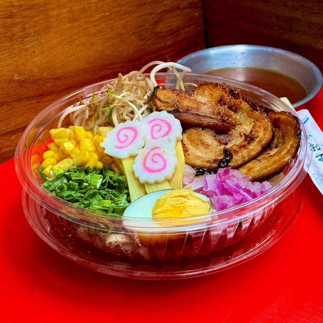 Caldo a base de pollo con pasta, bambu, cebolla, elote, cebollin, germinado, 1/2 huevo, 2 rebanadas de narutos, alga nori y la proteina de su eleccion.