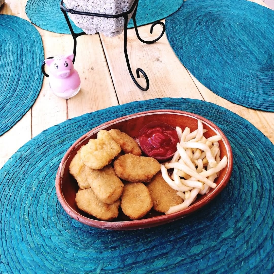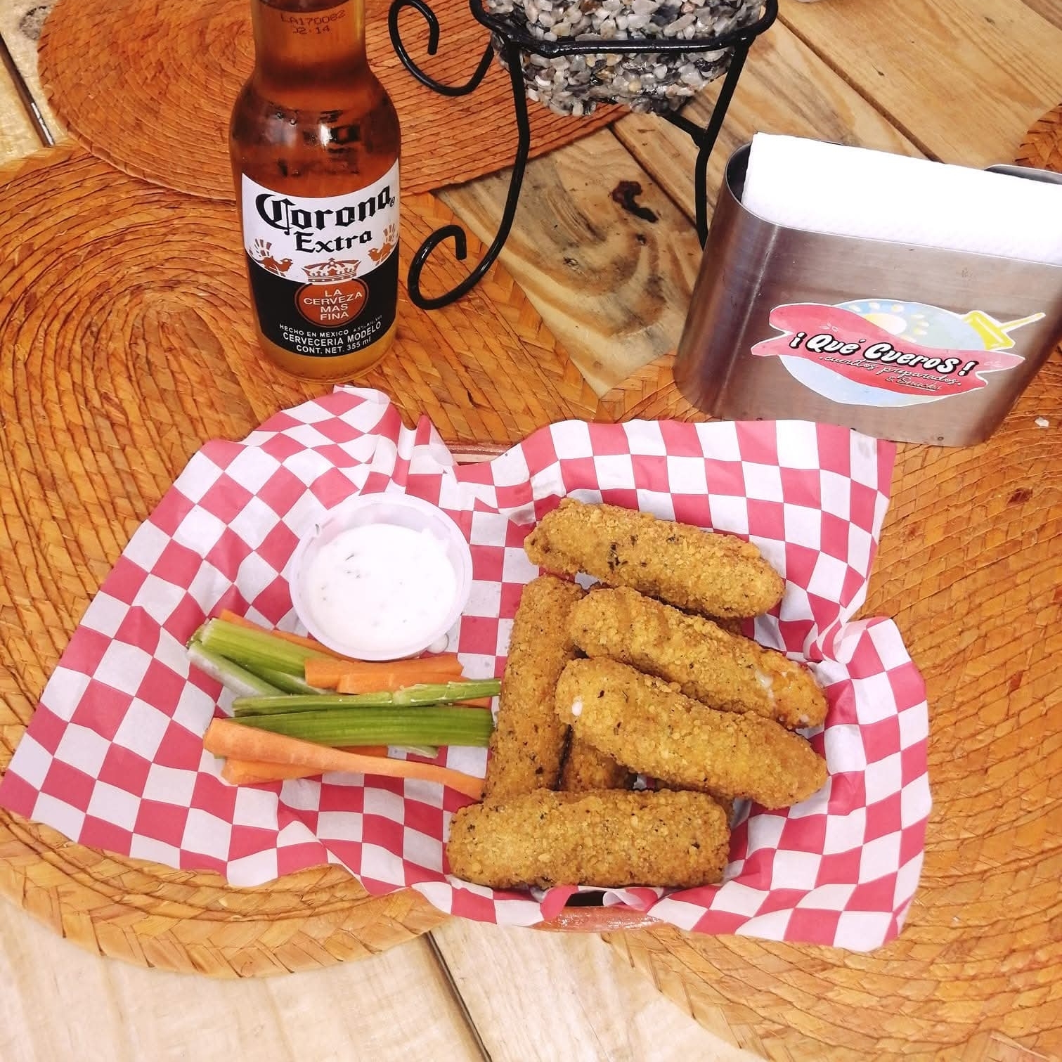 Bañadas en tu salsa favorita, acompañadas de papas a la francesa.