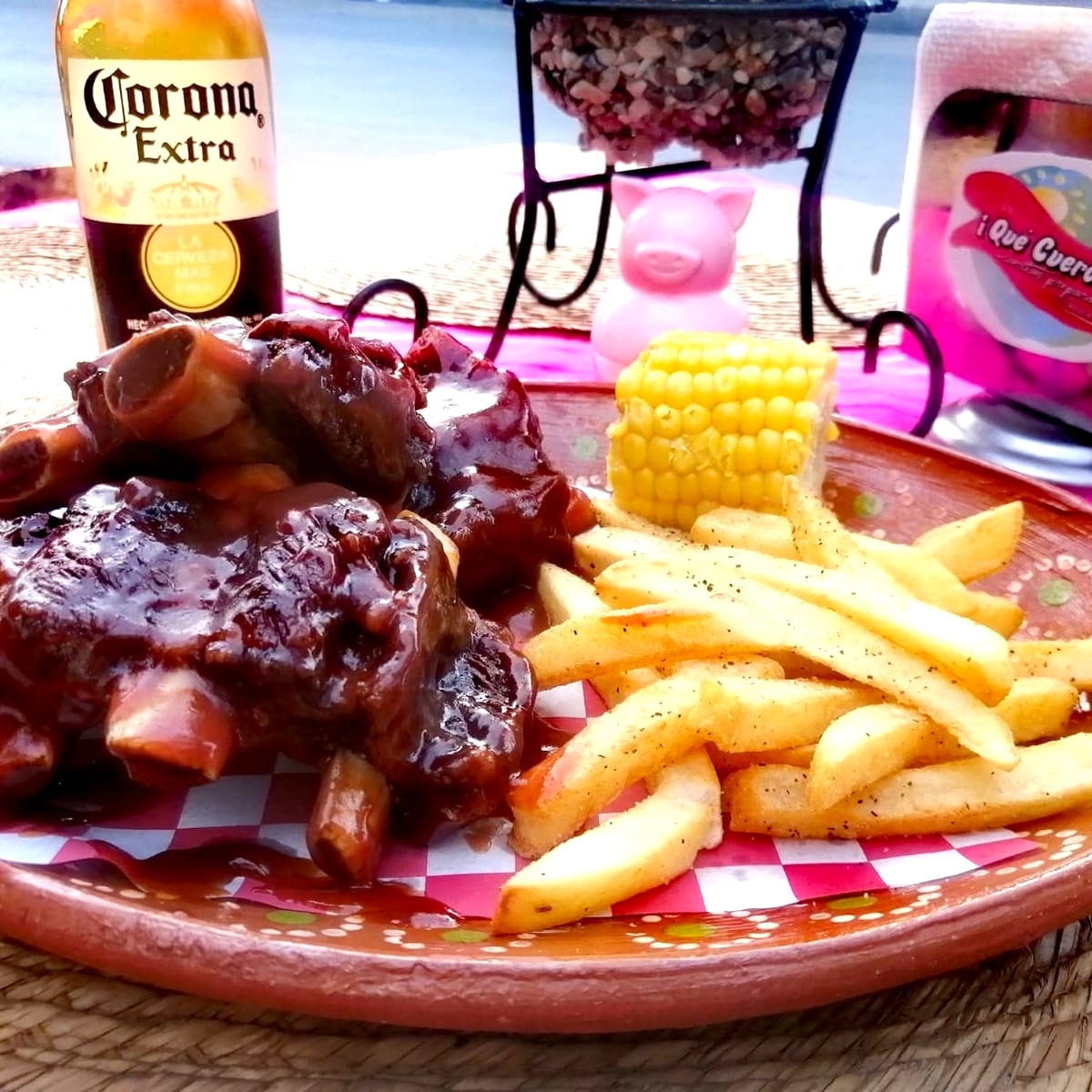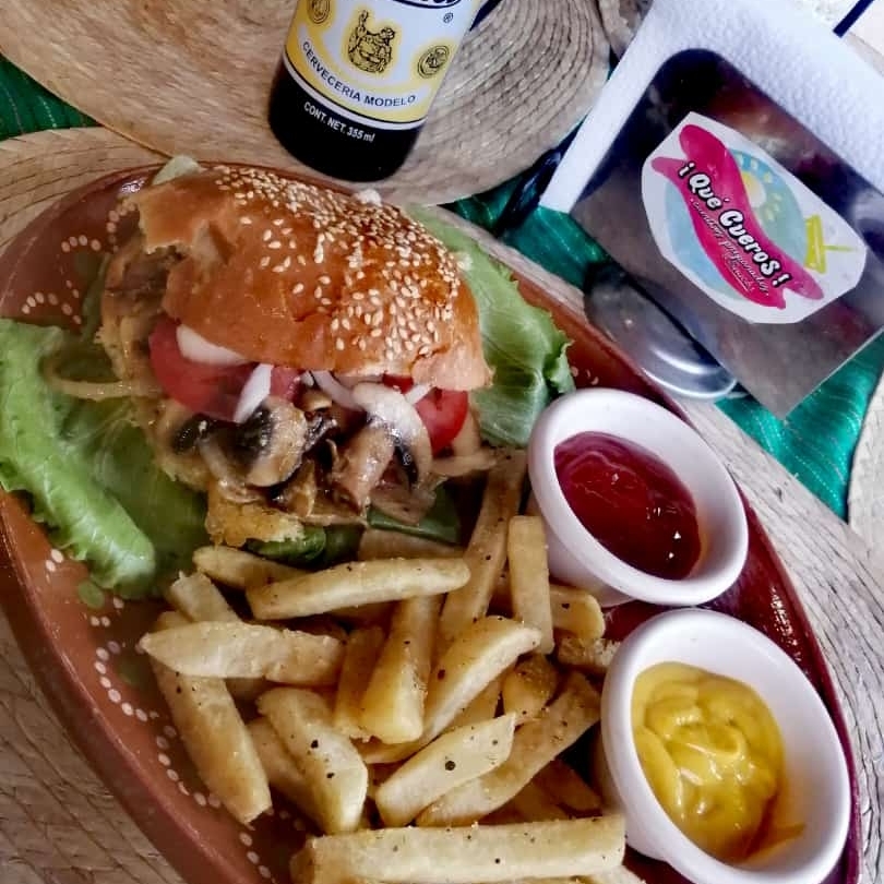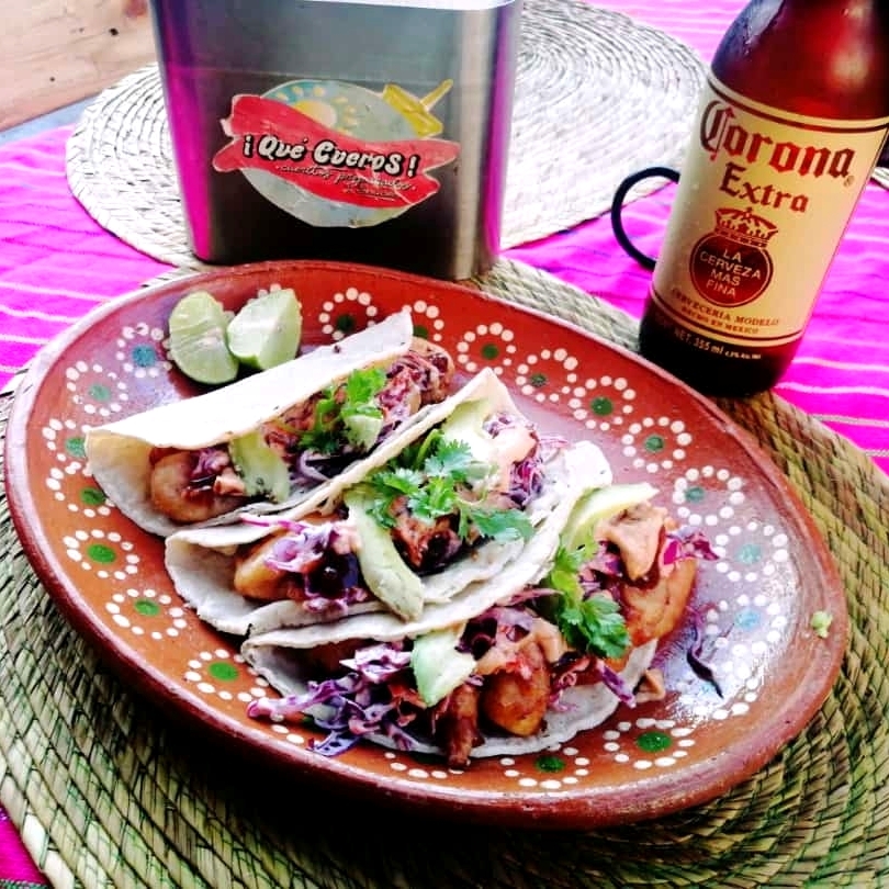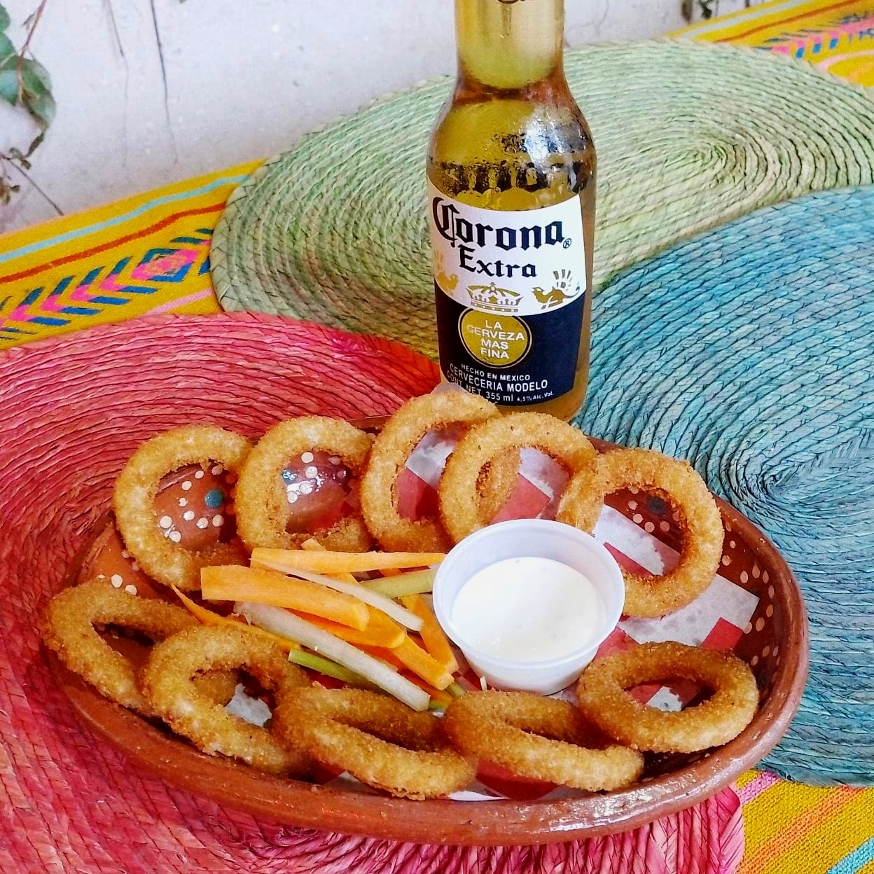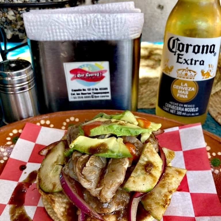 Acompañado de salsa chipotle y tamarindo, salsa mexicana y ensalada de col.