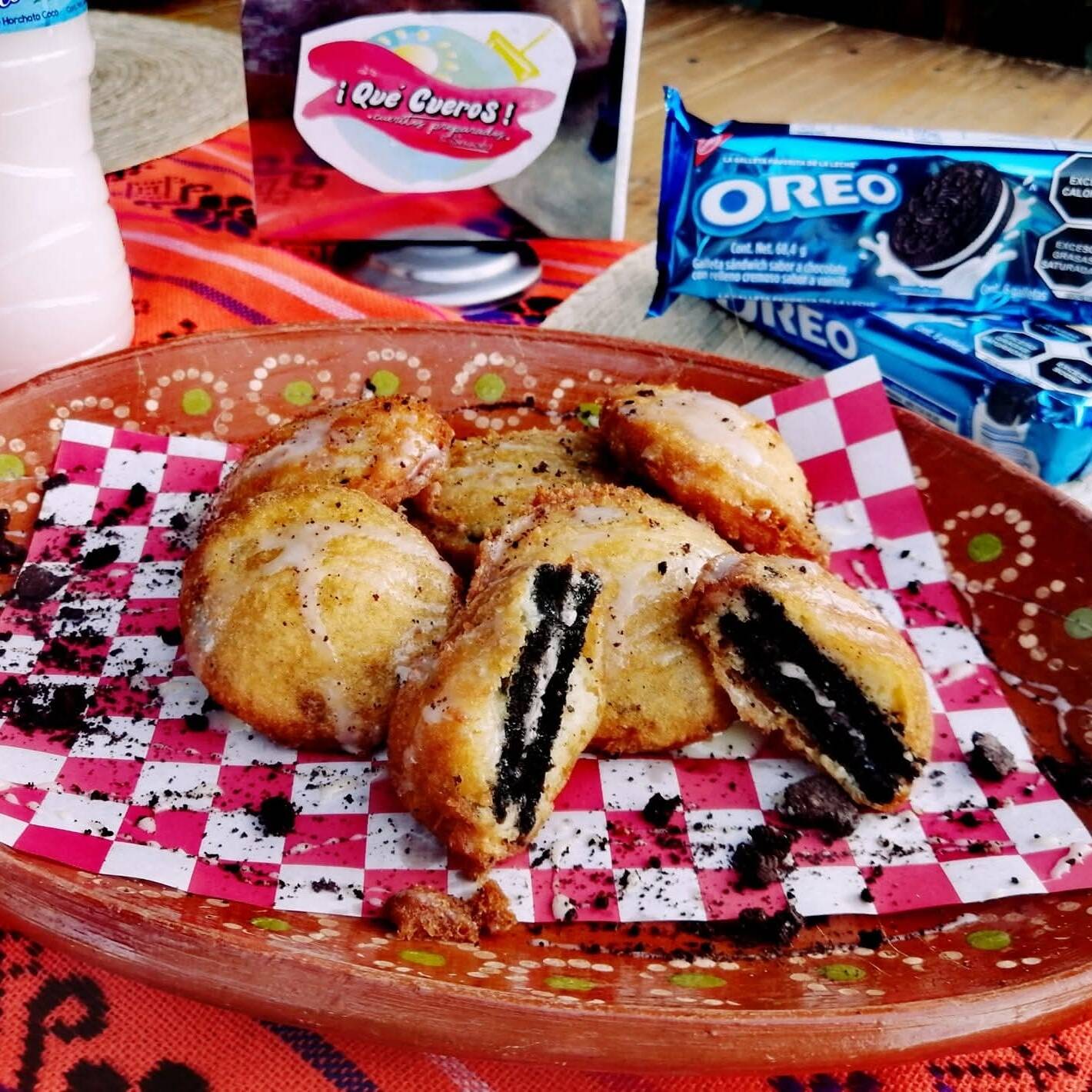6 Galletas oreo capeadas bañadas de lechera, cajeta y Nutella.