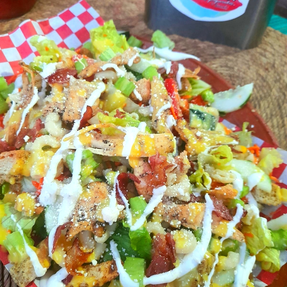 Bañadas en tu salsa favorita, acompañadas de vegetales y aderezo.