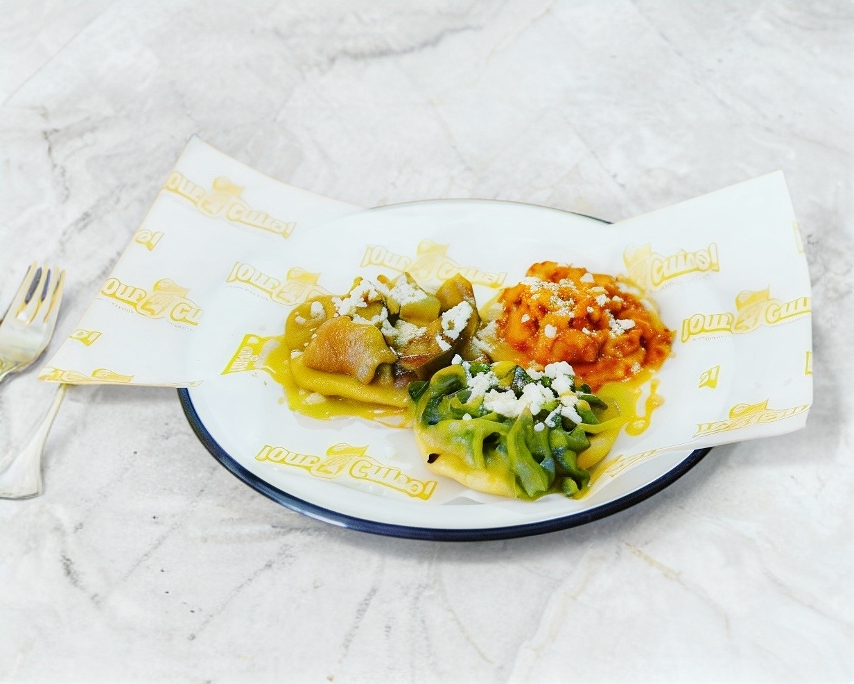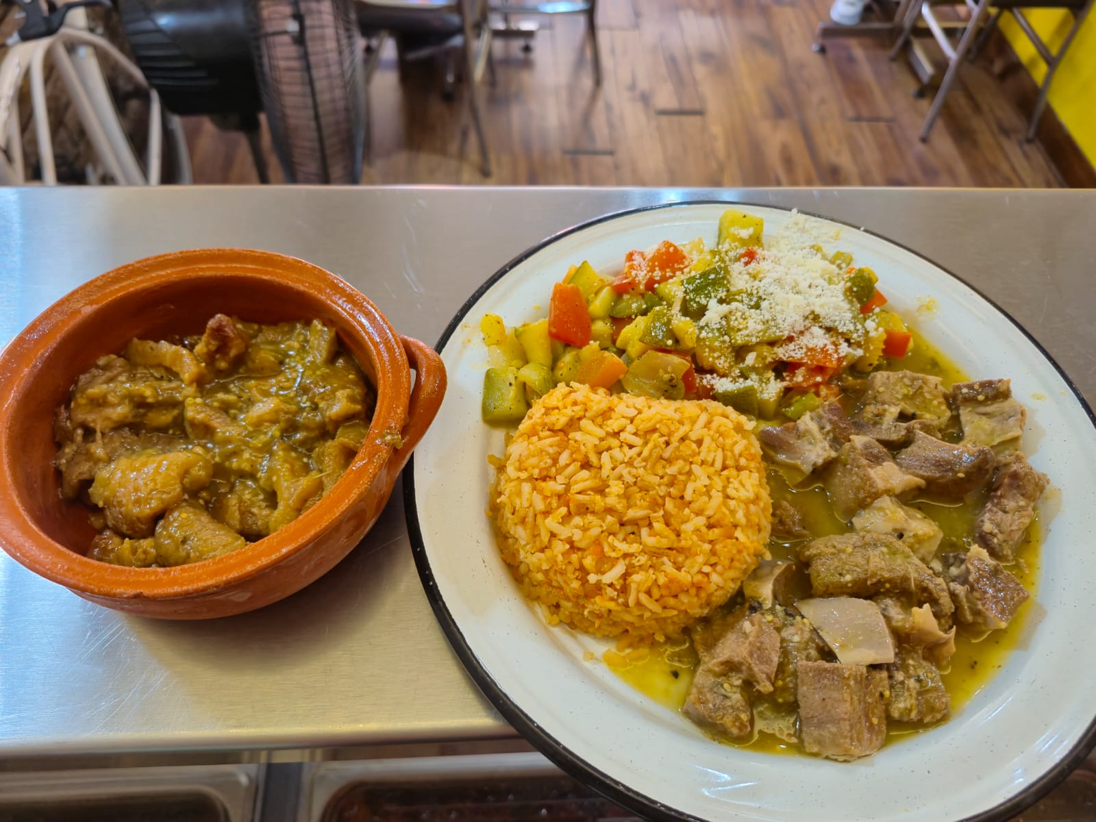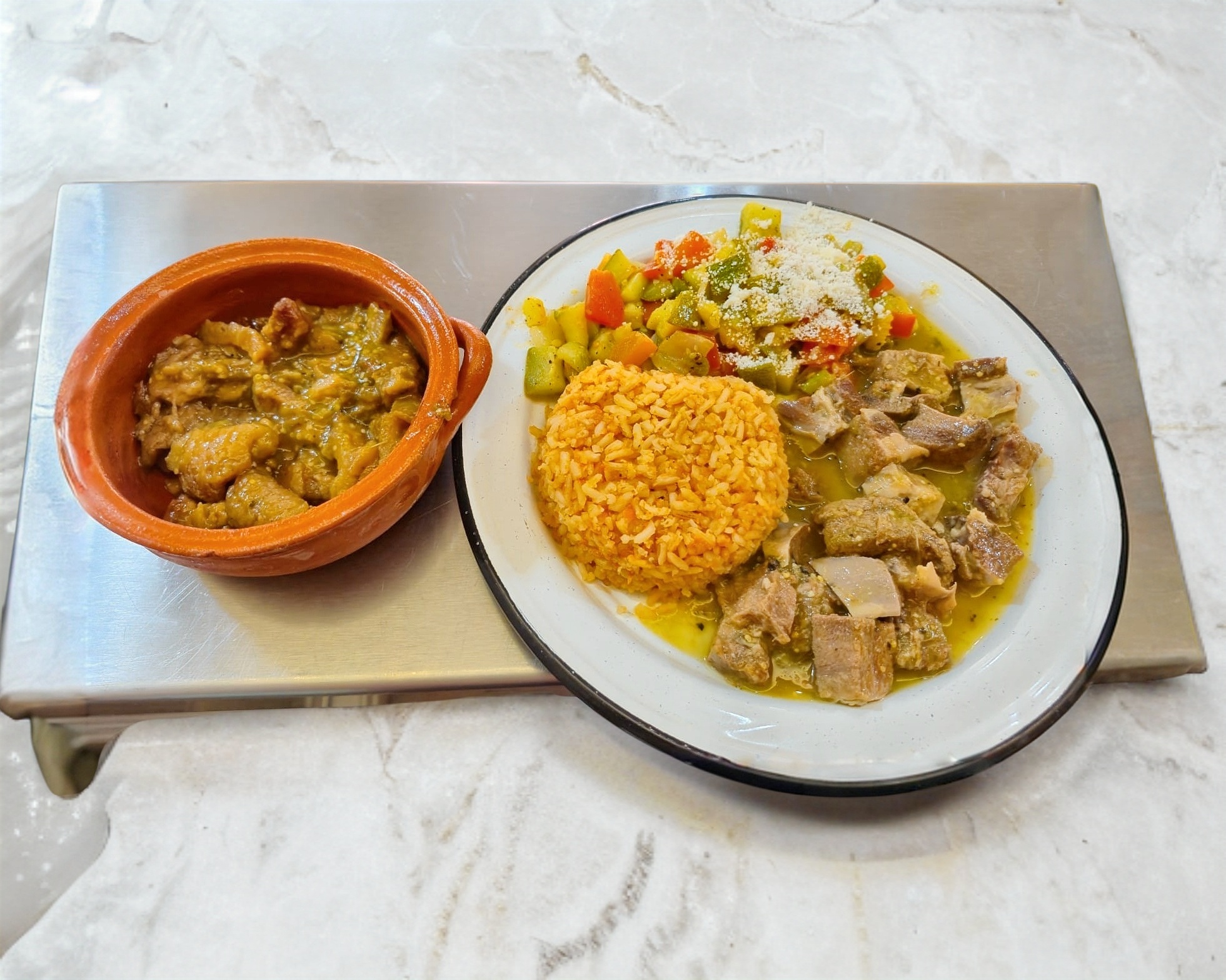 Elige tus 3 guisos y tus 2 guarniciones. Incluye tortillas y salsas