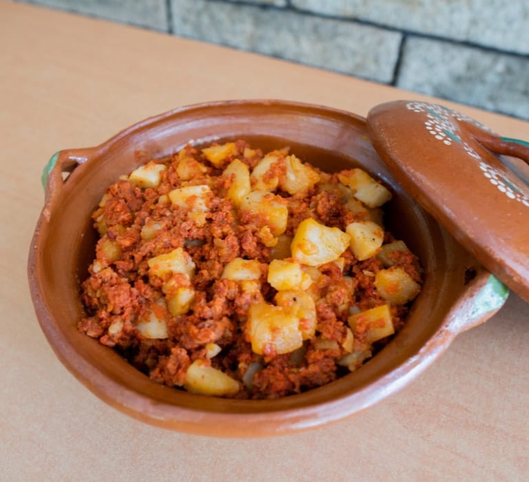 Elige tus 3 guisos (mediano 450 grs c/u) y tus 2 guarniciones. Incluye 10 tortillas y salsas