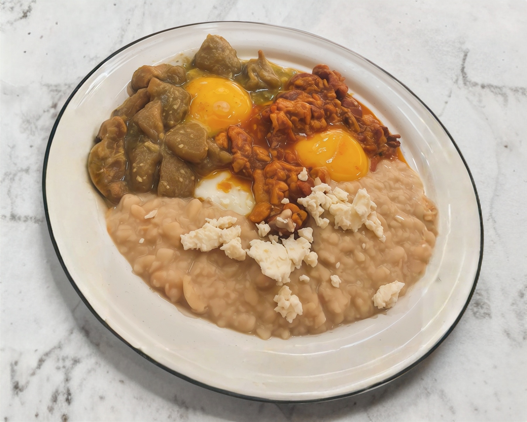 Estrellados con tu guiso favorito, acompañado de frijoles
