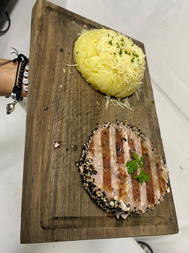 250 gr. Con una guarnición a elegir puré de papa, ensalada o elote asado.
