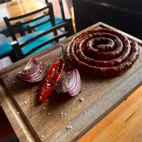 250 gramos de chistorra acompañad de tortillas, cebolla guisada y chile toreado