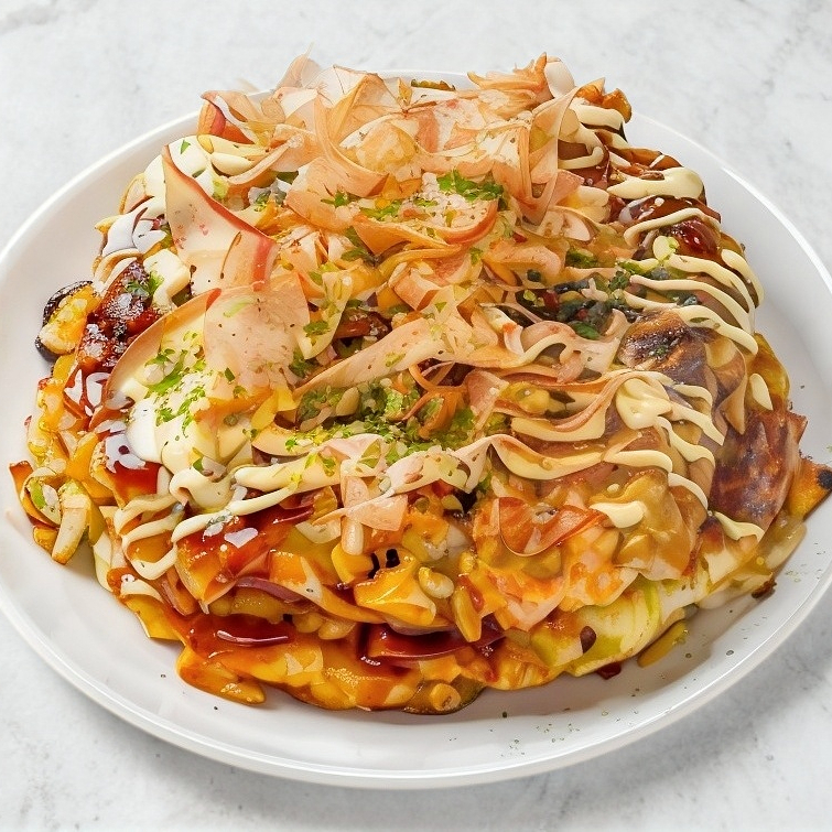 Panqueque japonés hecho de vegetales frescos, con un delicado toque umami