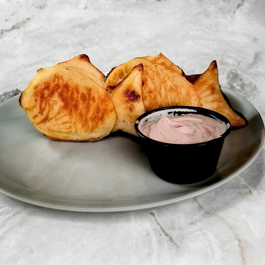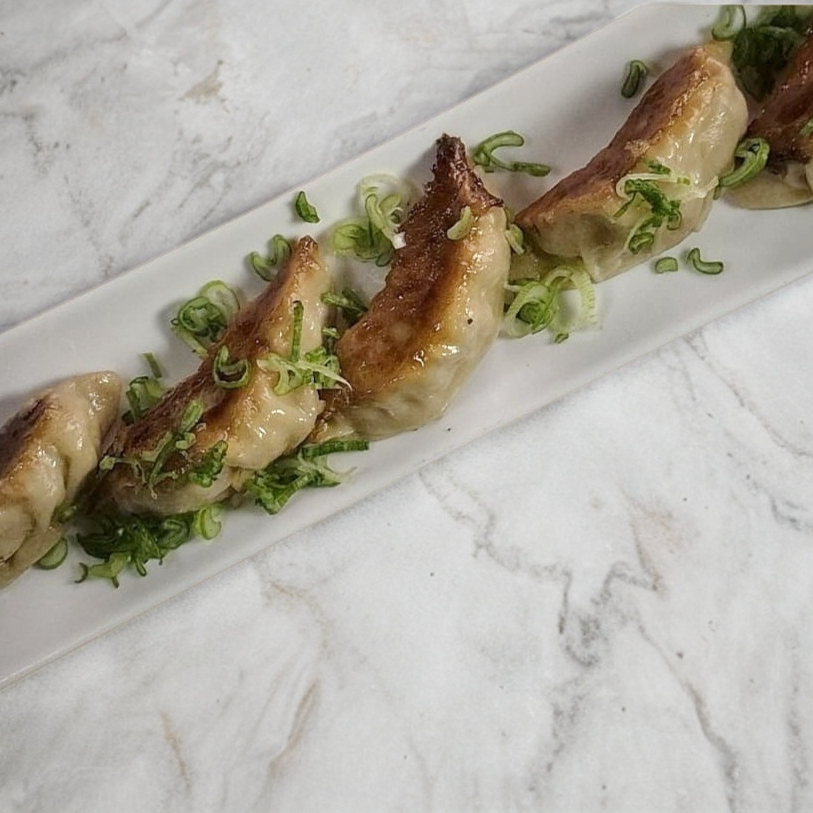 5Pzs. empanadas japonesas rellenas de cerdo sazonado, selladas al sartén 1oz de gyosas de soya
