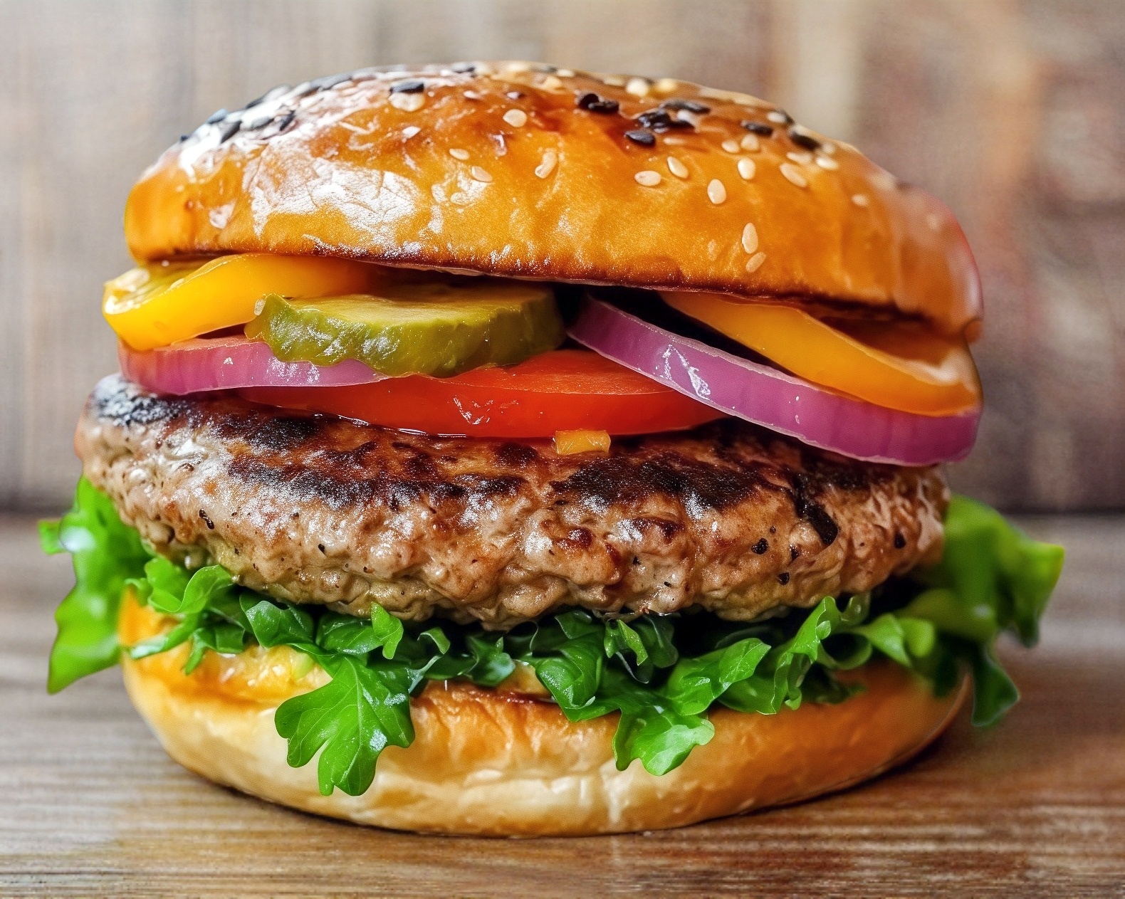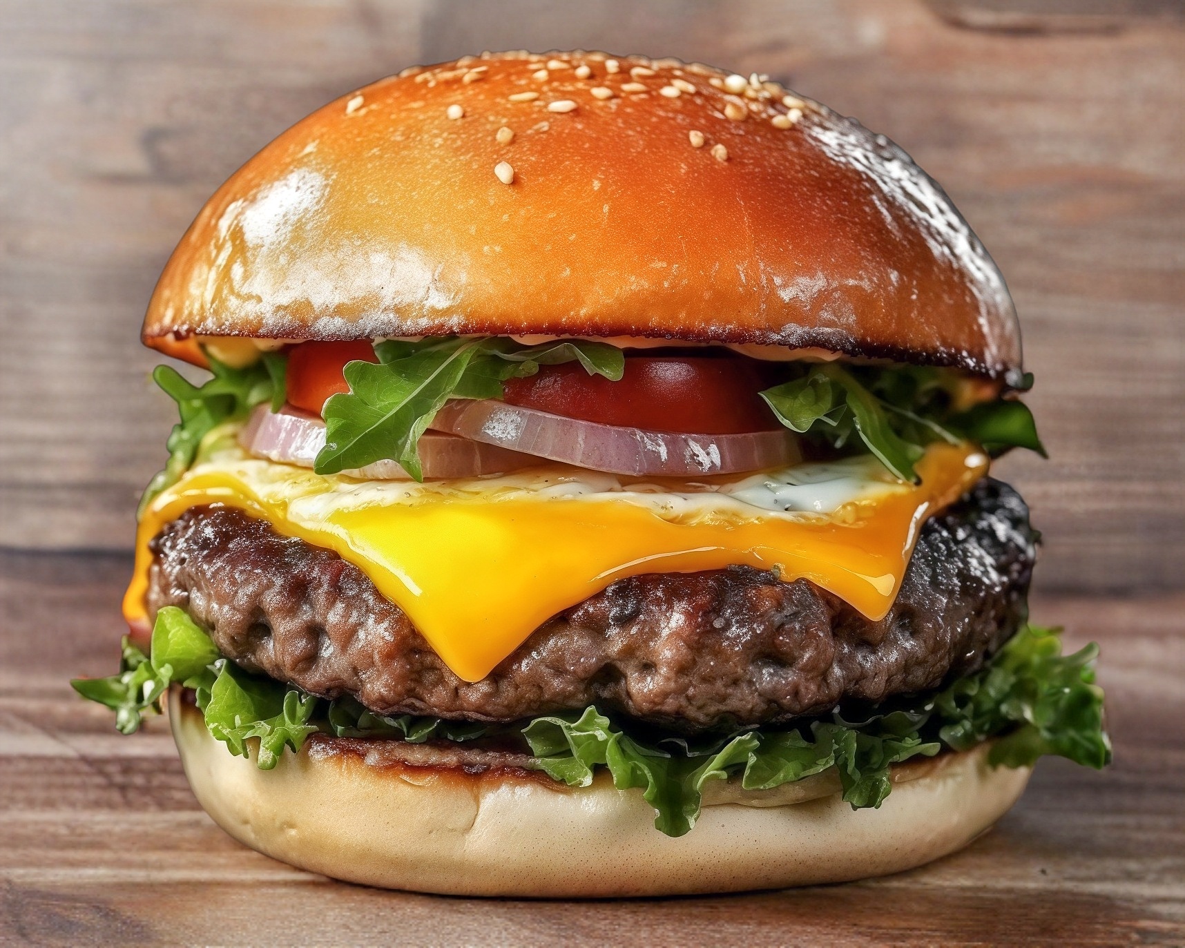 carne de sirlon lechuga jitomate cebolla pepinillos pan ajonjoli queso americano morron amarillo con su porcion de papas