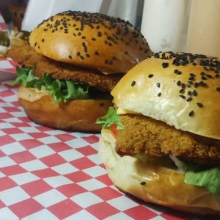 carne de pollo empanizado lechuga jitomate cebolla crema salsa catsup mayonesa pan con ajonjoli acompañada de papas ala francessa.