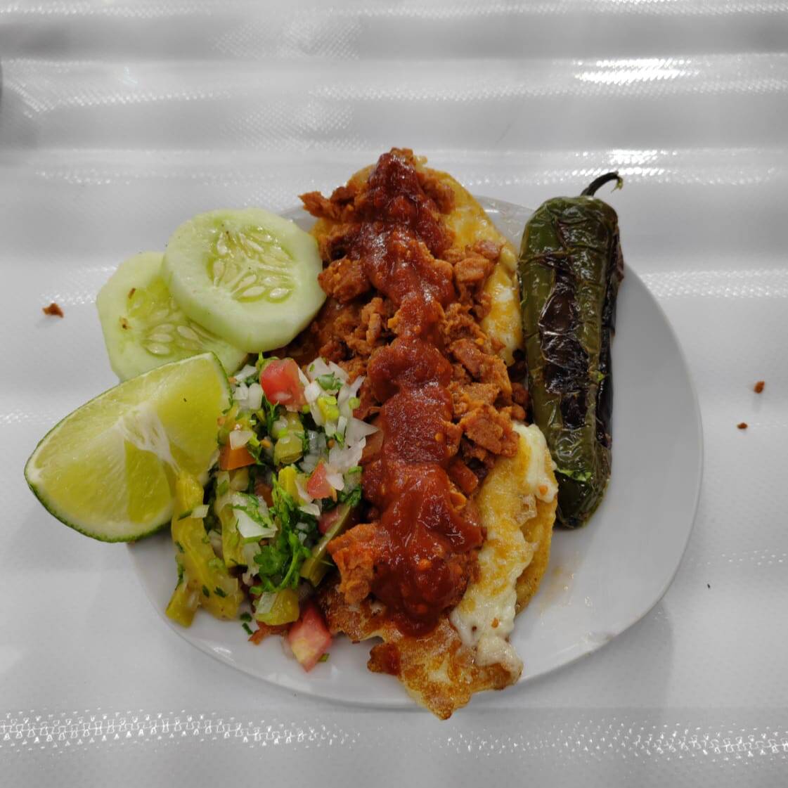 Tortilla de maíz y asada y chorizo
